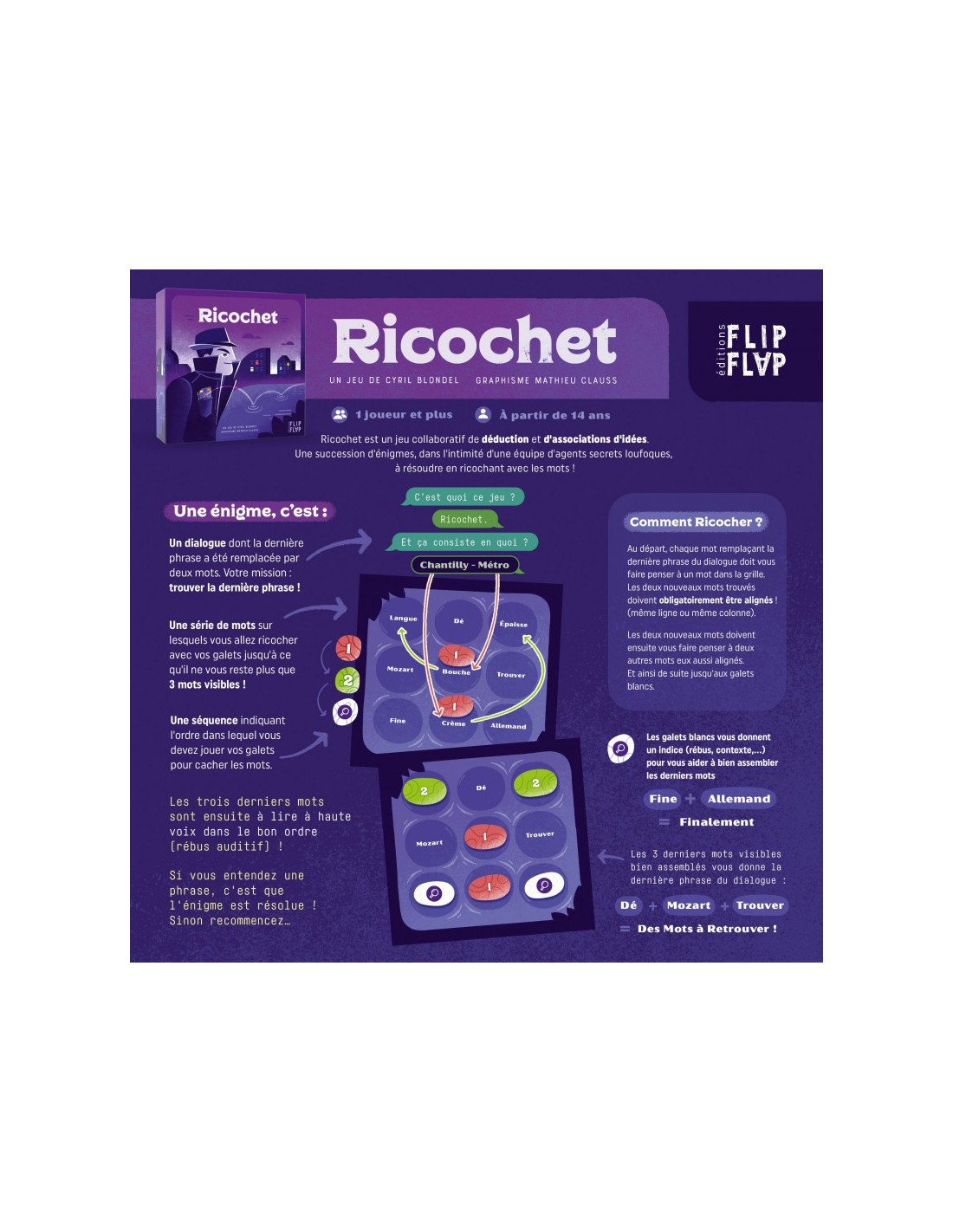 A la fin, les mots encore visibles (de 3 à 5) présentent un rébus drôle qui, une fois lu à haute voix dans le bon ordre, permet aux joueurs de découvrir une phrase ! La dernière du dialogue... Le contexte et des indices permettent aux joueurs de trouver le bon ordre. En cas d’erreur de parcours, ils doivent retourner en arrière ou recommencer, en regardant si besoin les réponses fournies.