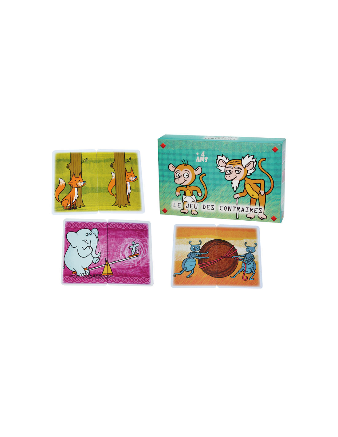 Contenu : 32 cartes grand format (formant 16 associations de contraires), 1 règle du jeu.