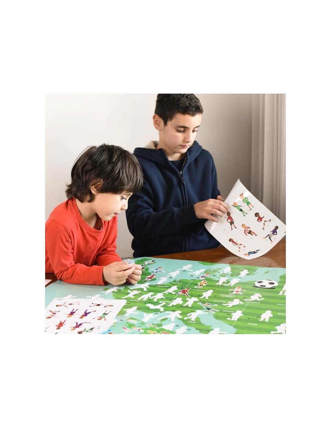 Avec ce jeu, les enfants se passionnent pour les clubs d’Europe de football : ils collent les petits footballeurs sur le poster géant, et reconstituent ainsi une très belle carte d’Europe. Une belle manière d’apprendre la géographie en s’amusant.