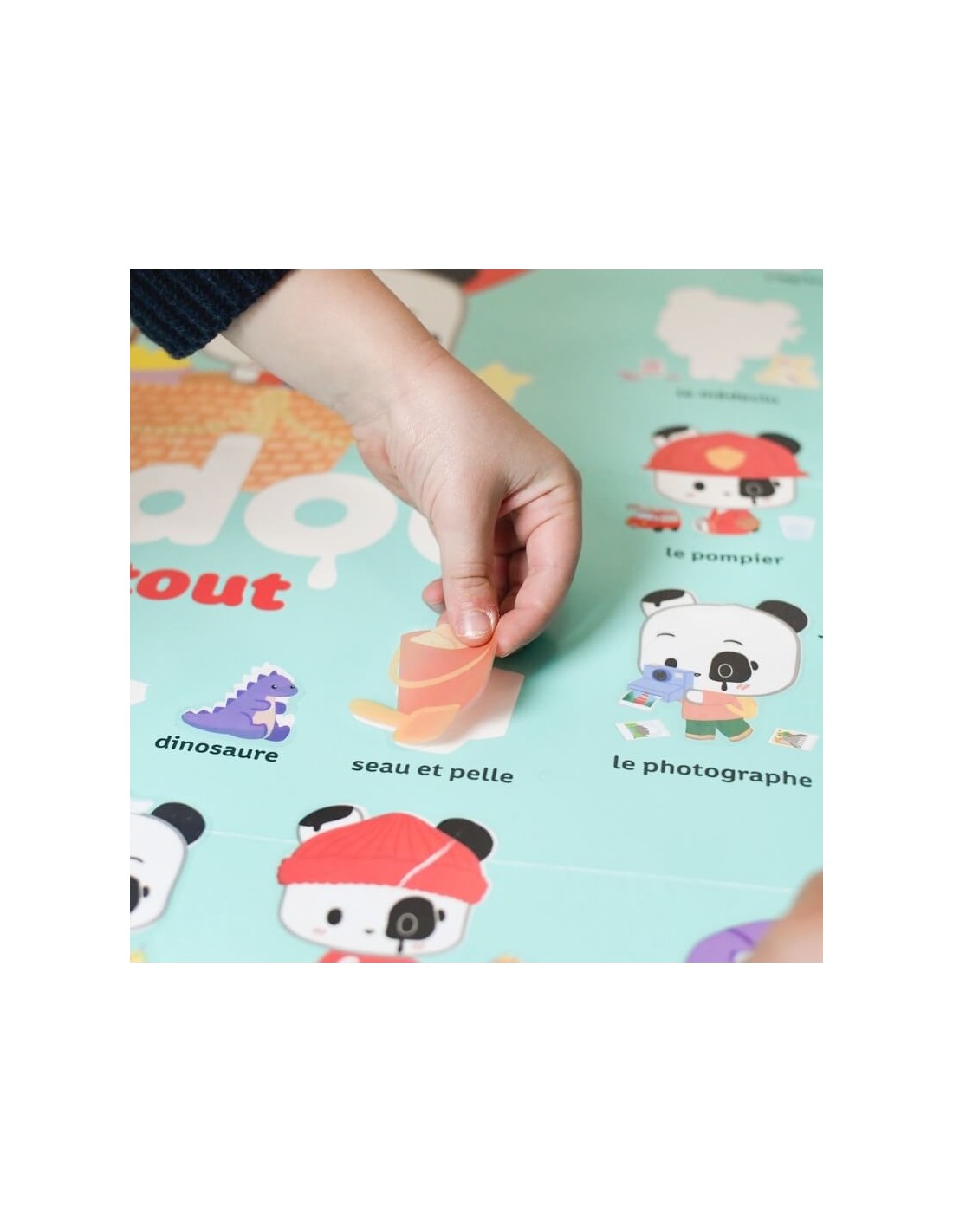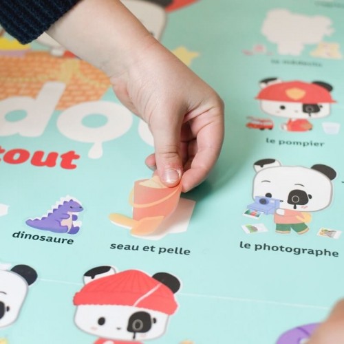 Connaissez-vous Gadou, le célèbre petit panda malicieux ? Avec ce kit, l’enfant complète un grand poster avec des stickers repositionnables, et découvre Gadou tantôt pompier, tantôt pirate, lion ou astronaute.