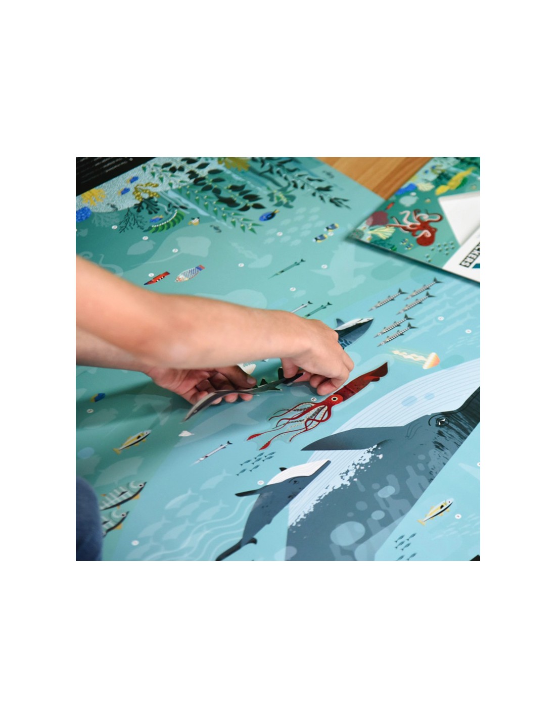Un poster sur le thème des océans et ses 59 stickers repositionnables !