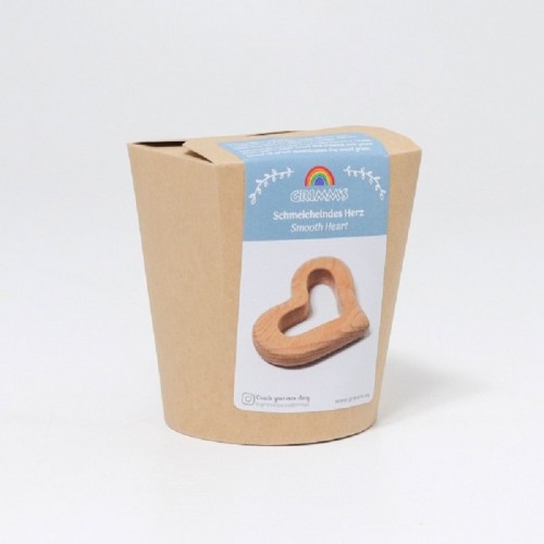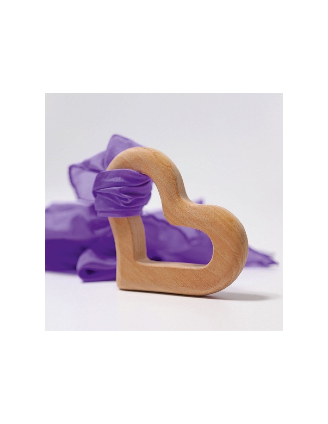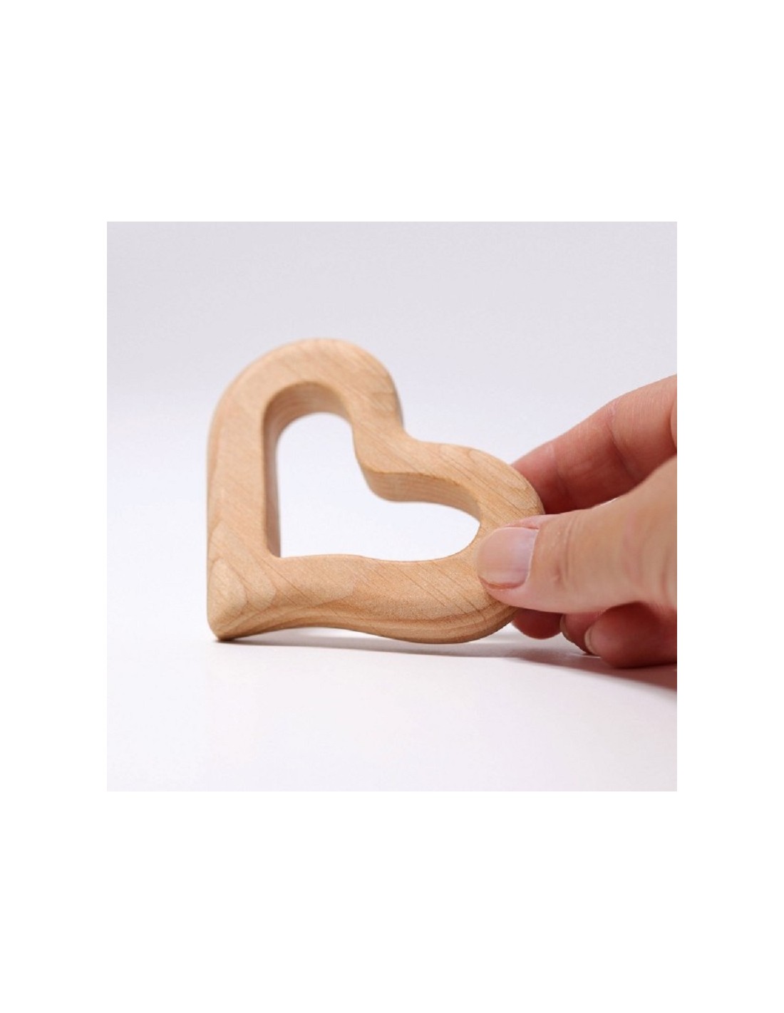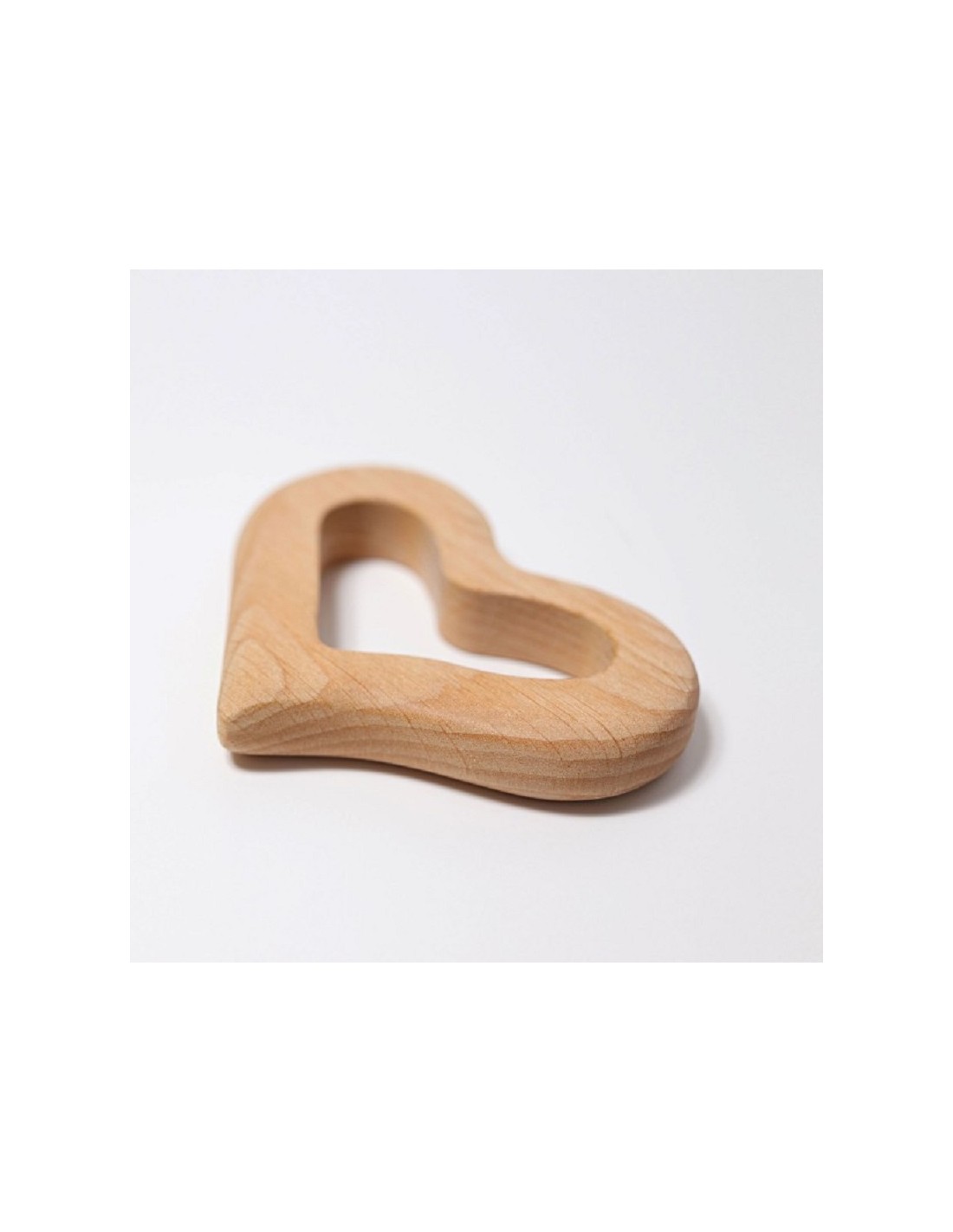 Hochet cœur lisse en bois naturel à saisir ou à utiliser comme anneau de dentition.
