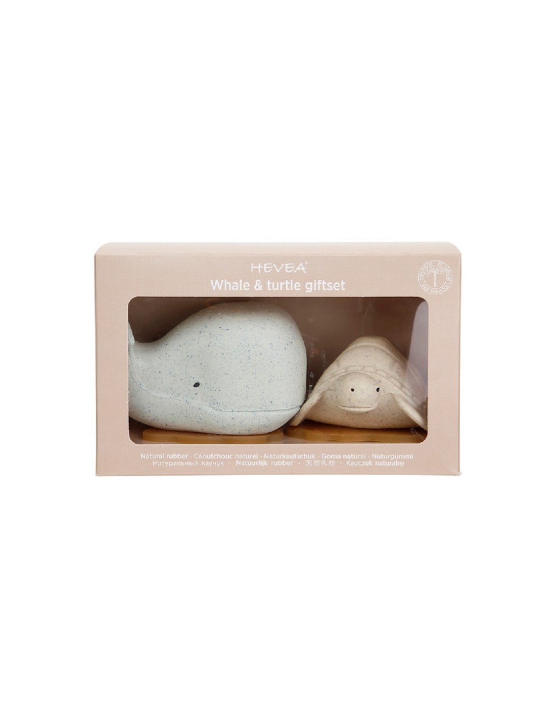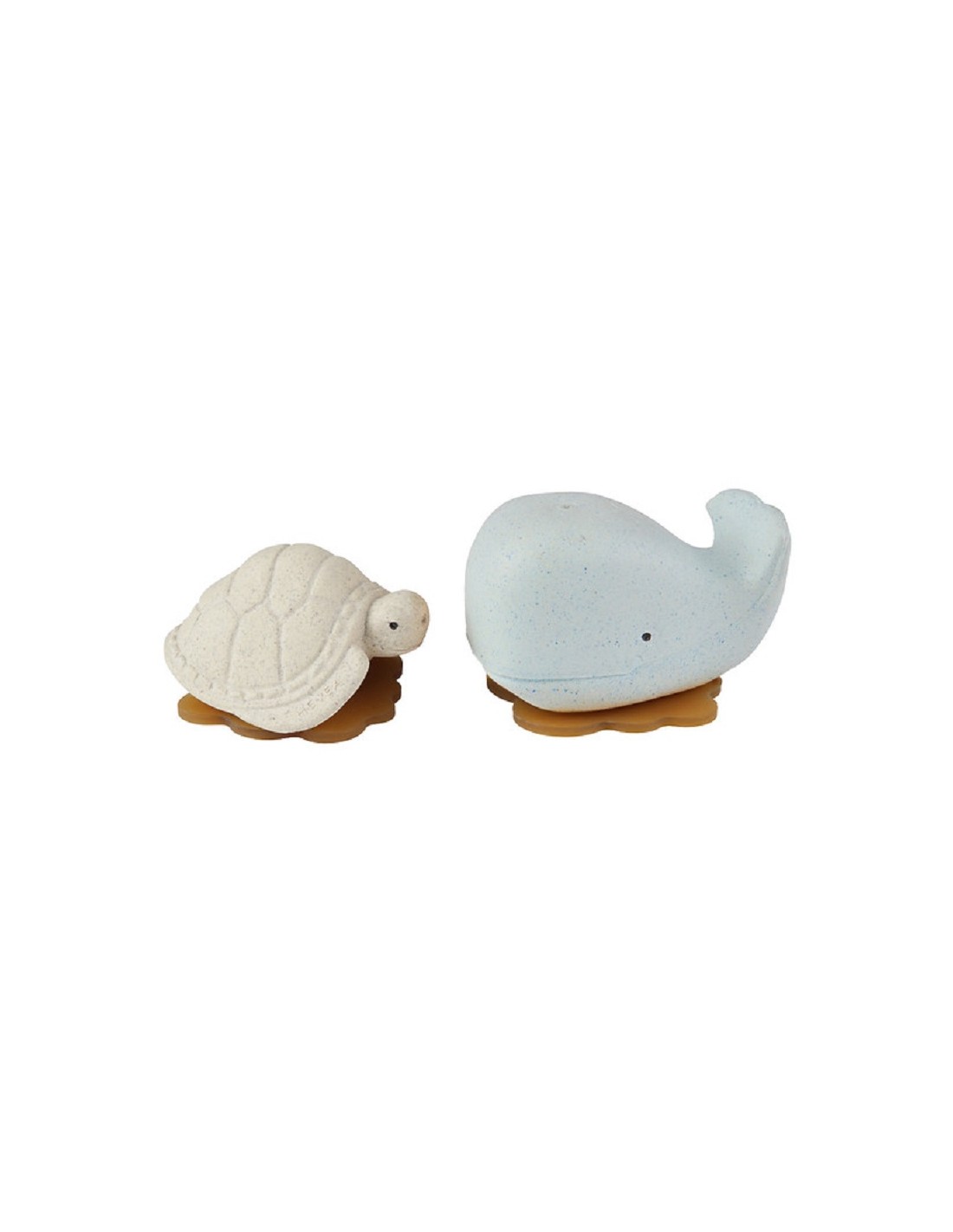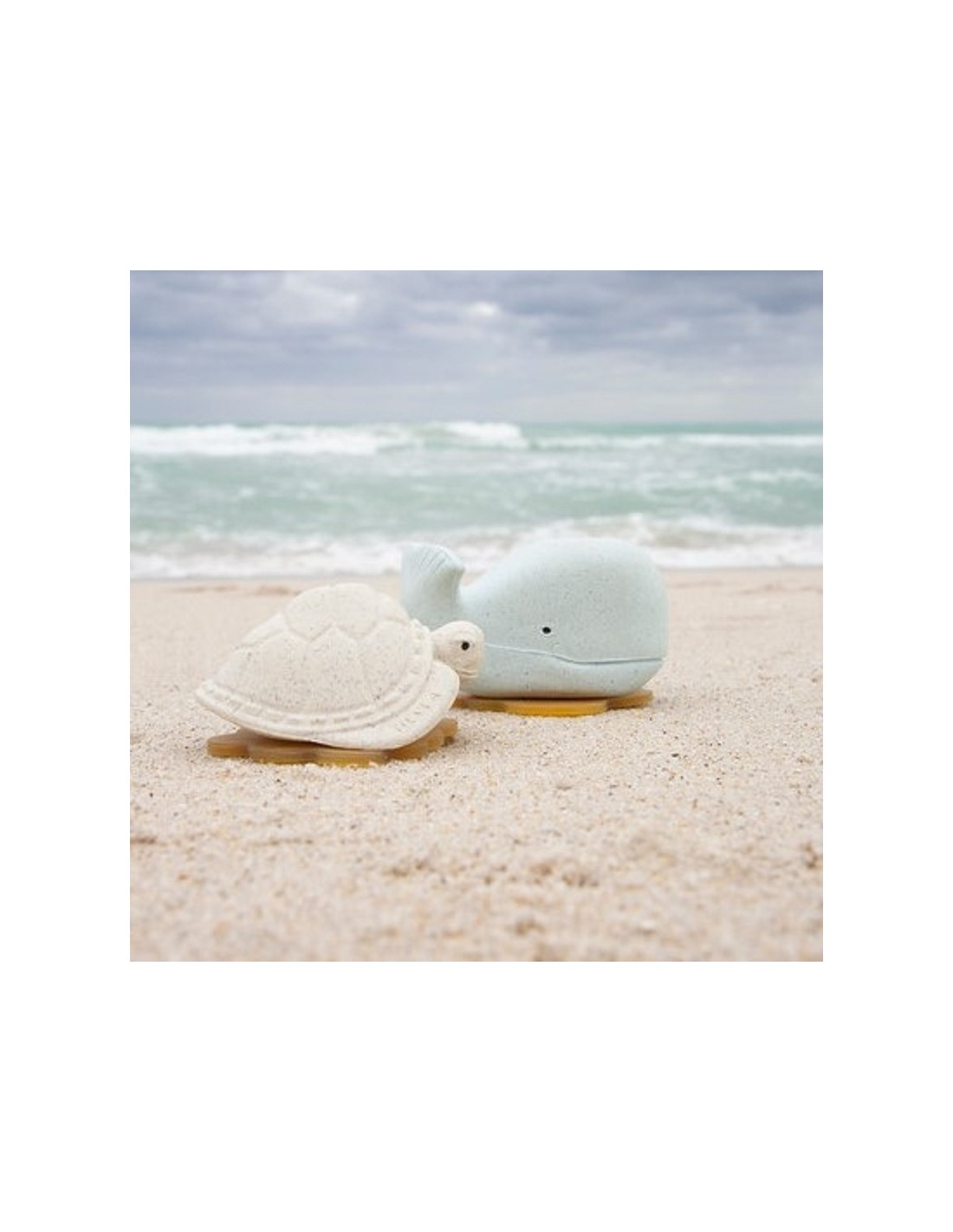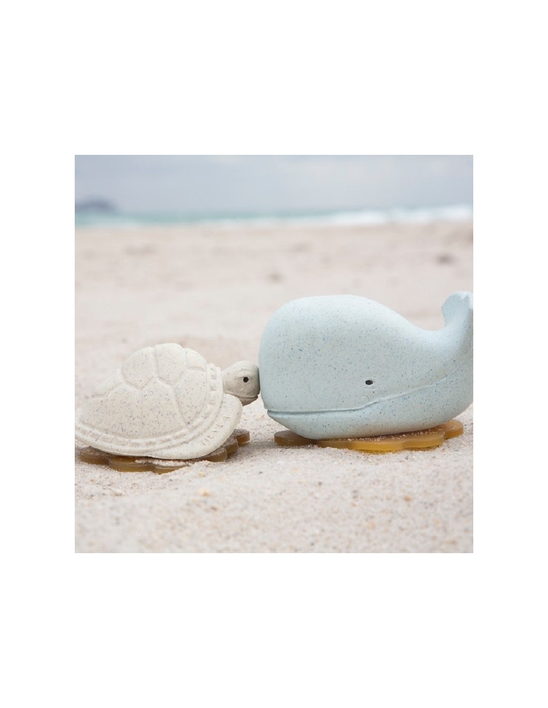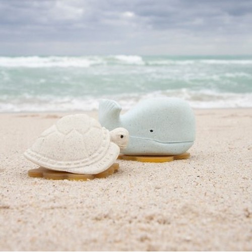 Les sets de bain baleines et tortues sont fabriquées à partir de caoutchouc 100% naturel, entièrement sans plastique.