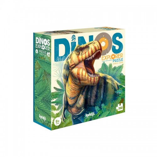 Initiez vos enfants aux puzzles avec ce jeu de la marque espagnole Londji. Les enfants passionnés par les dinosaures vont adorer ce puzzle dinos discover de 350 pièces. Avec ce puzzle, vous pourrez les initier au puzzle, et leur apprendre la concentration et la logique sans perdre leur attention. Une fois le puzzle complété, vos enfants pourront fixer des disques sur chacun des dinosaures pour découvrir plus d'informations à leur propos comme le poids ou le régime alimentaire.