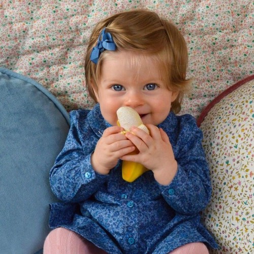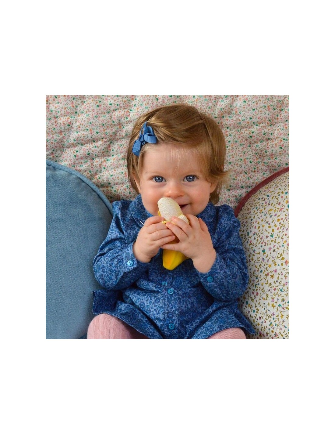Ana la Banane est un jouet de dentition pour bébé en latex 100% naturel (hévéa), qui stimule les sens et apaise les gencives.