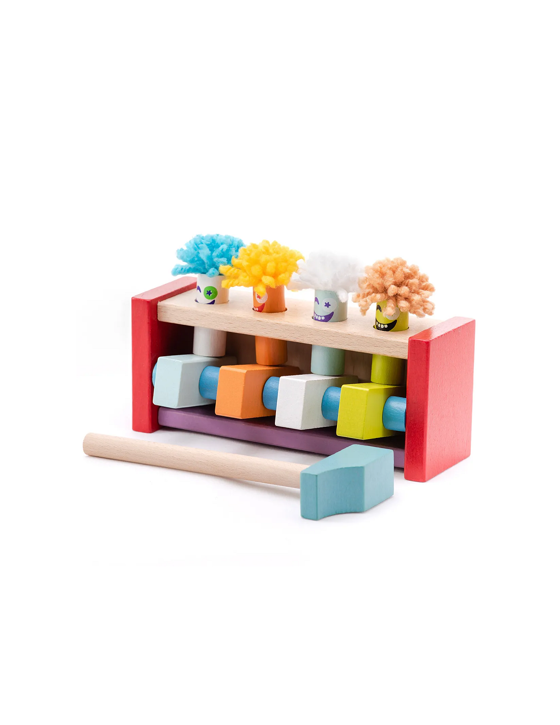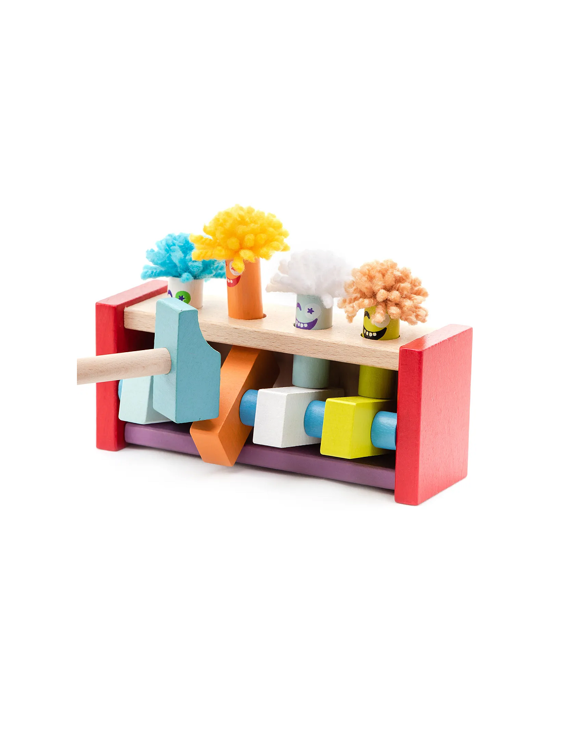 4 Clowns rigolos que l'enfant fait sauter à l'aide d'un marteau en bois !