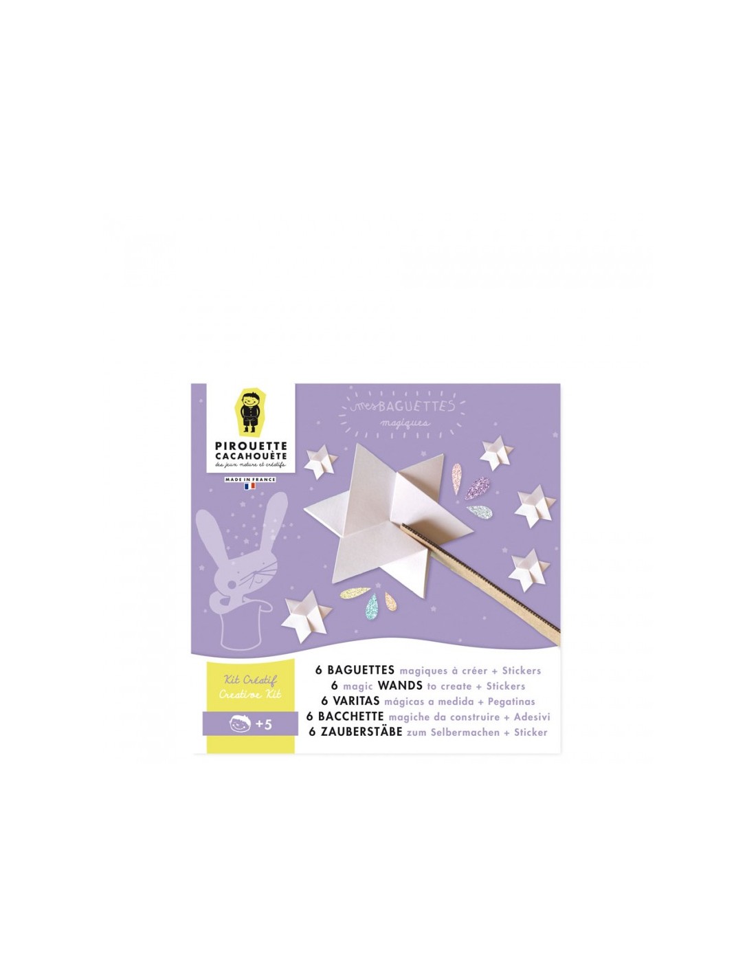 Une activité manuelle féerique : 6 baguettes magiques en papier et carton recyclés à fabriquer et à décorer avec les 228 stickers brillants.