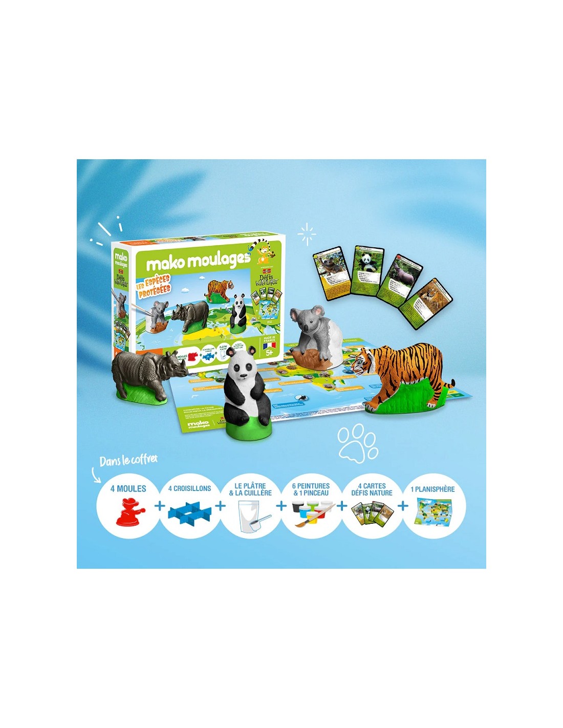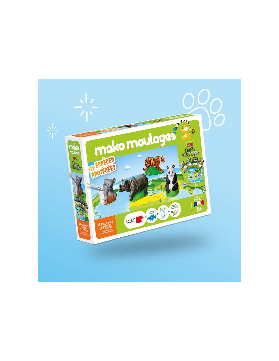 Espèces protégées coffret 4 moules - Mako moulages est un coffret créatif sur les Espèces protégées en partenariat avec Défis Nature de Bioviva.