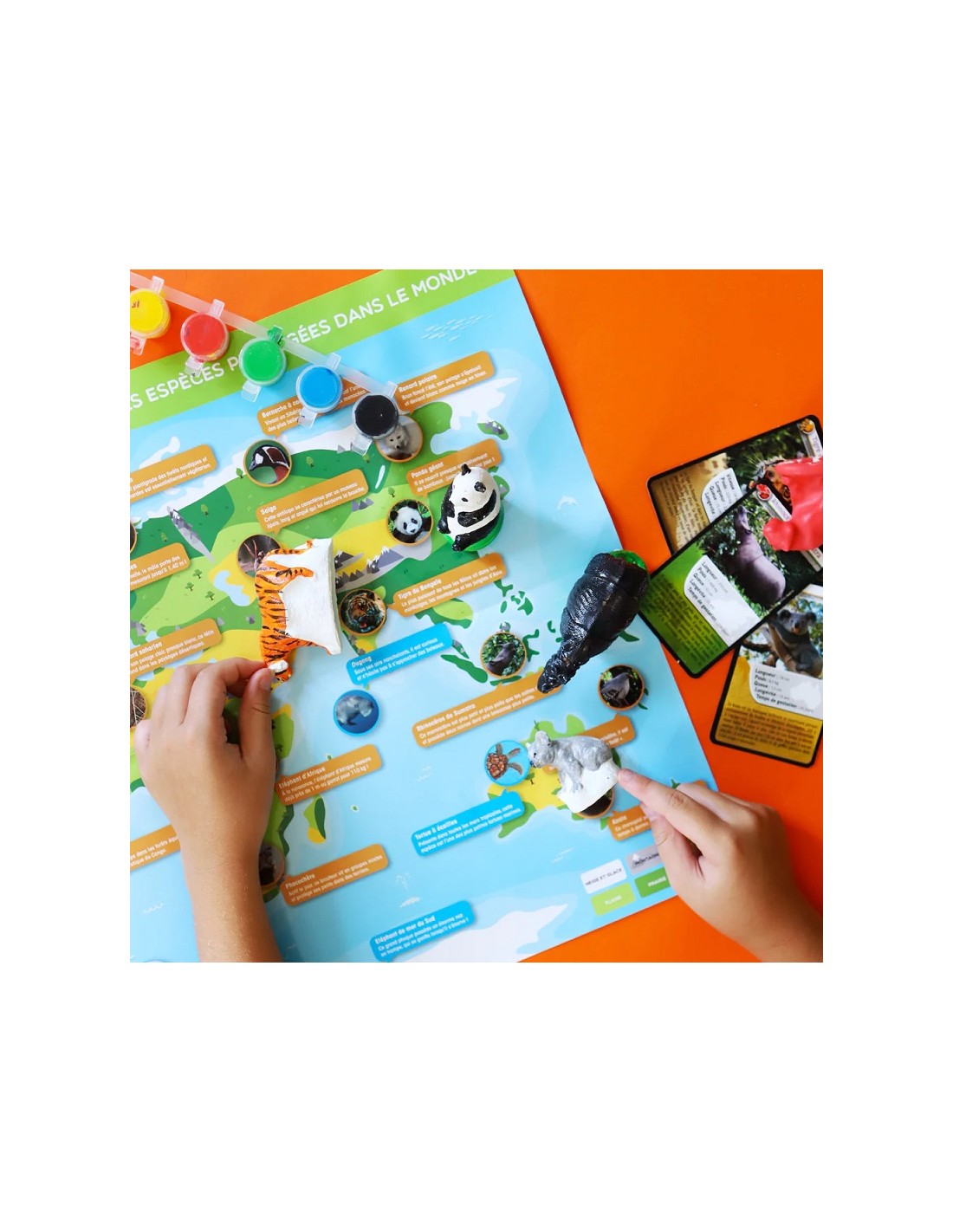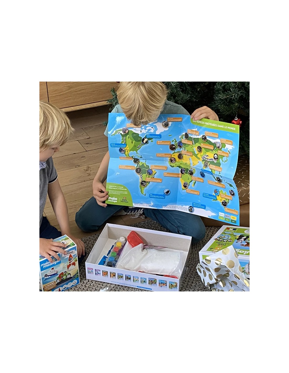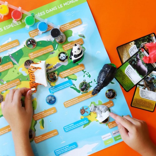 En apprenant à les connaître avec les cartes Défis nature fournies, mais aussi à les localiser dans le monde avec le planisphère offert, et en les fabriquant soi-même à travers le moulage et la peinture, vous pouvez aider à susciter l'intérêt des enfants pour la préservation de la biodiversité.