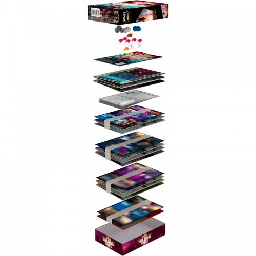 Under Falling Skies est un jeu solo qui invite le joueur à incarner la défense terrienne contre l’attaque extraterrestre. À chaque tour de jeu, le vaisseau ennemi va s’approcher de la planète et la partie sera perdue s’il parvient à se poser.
