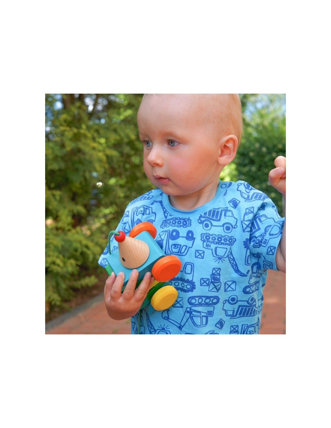 Plus on le tire vite et plus il fait de bruit avec ses plaquettes vertes et bleues. Plaisir garanti à chaque pas !