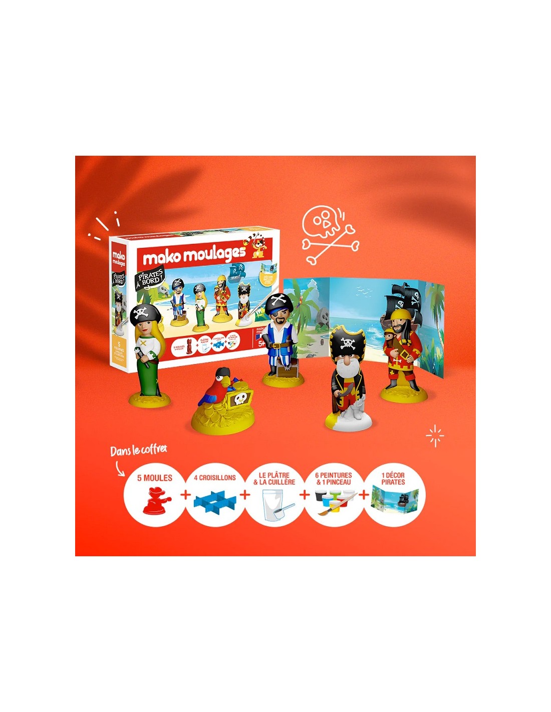 Avec ce coffret créatif Pirates à bord coffret 5 moules - mako moulages, moule et peins les 4 terribles pirates des mers et leur coffre aux trésors (sans oublier le perroquet perché) !