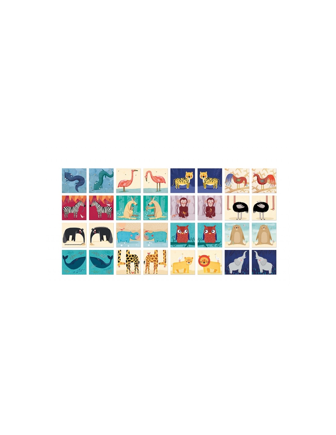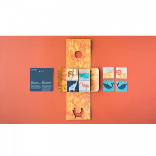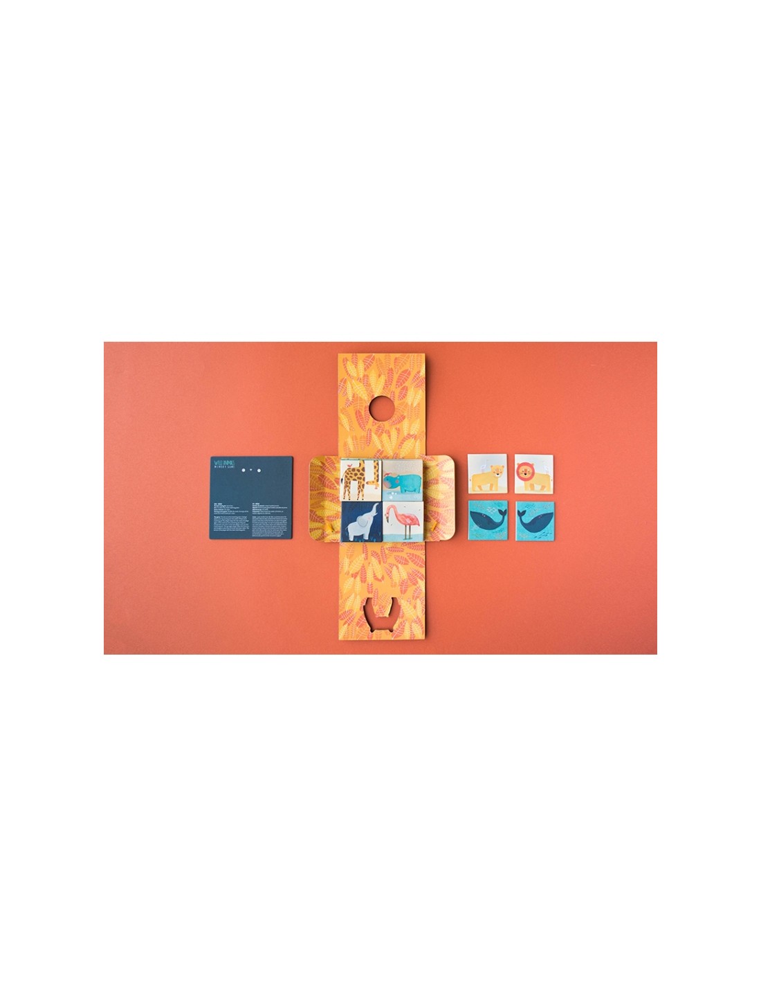 Dans Mémo wild animals - Londji, retrouvez les tigres, lions, kangourous, éléphants...et ainsi de suite jusqu'à 16 paires.
