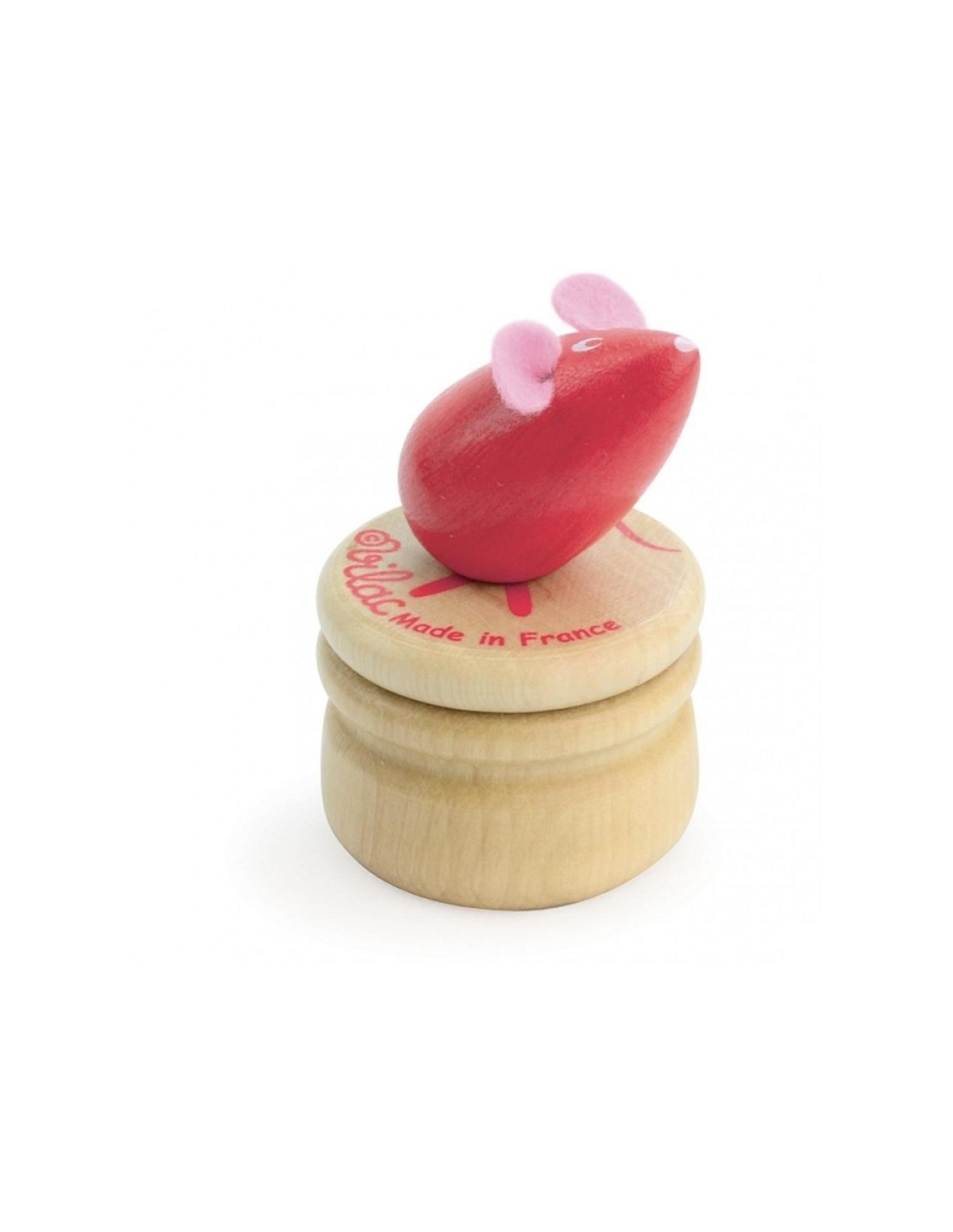 Boîte à dents décorée d'une petite souris rouge et ses oreilles en feutrine rose.