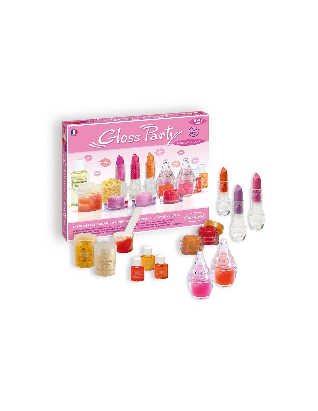 Avec ce kit créatif et cosmétique, amusez-vous à créer vos propres rouges à lèvres, gloss et baumes à lèvres à base de cires et d'arômes naturels !