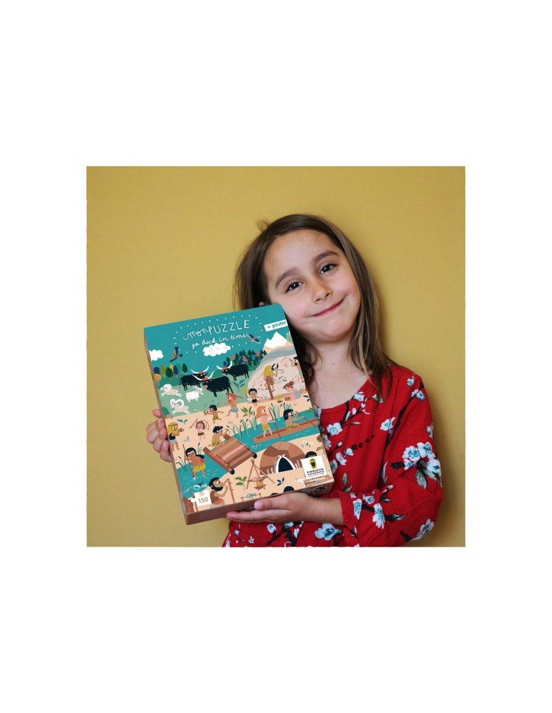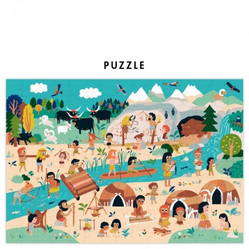 Dans ce puzzle, l'enfant va travailler son sens de l'observation et découvrir la vie au temps de la Préhistoire de façon pédagogique.