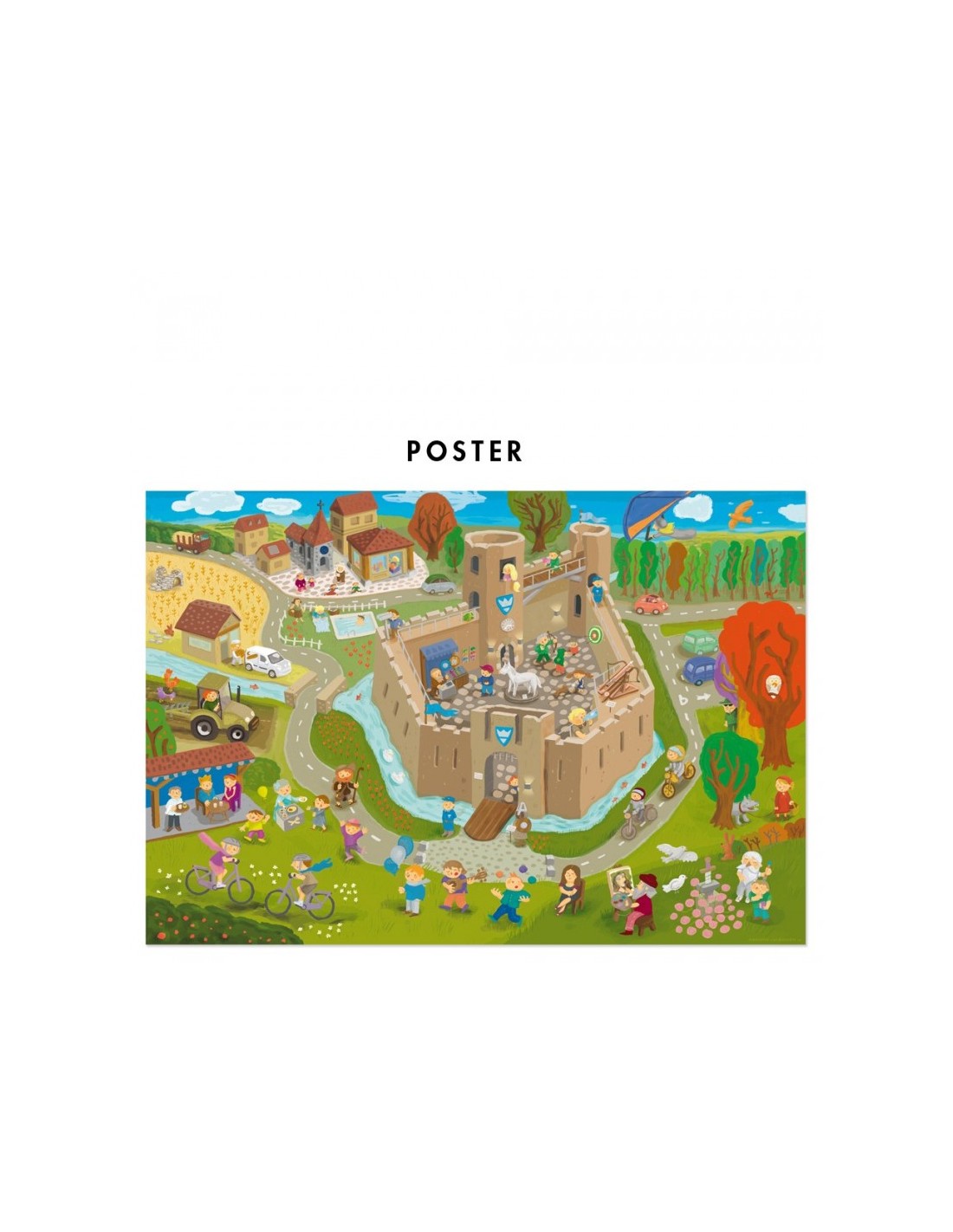 Un poster représentant une scène contemporaine illustre un site touristique de château fort, chaque pièce du puzzle vient se superposer à cette illustration et transpose cette scène contemporaine au temps des chevaliers et des princesses… Un concept de puzzle révolutionnaire !