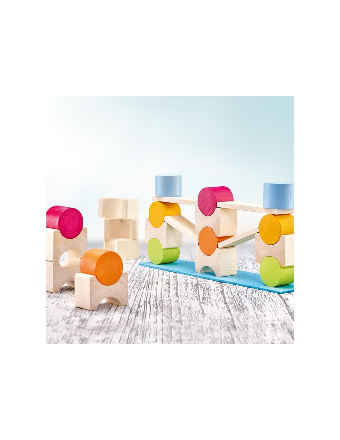 Les formes ainsi que la base en feutre stabilisent les constructions. La construction permet d’exprimer sa créativité avec différents niveaux de difficultés.