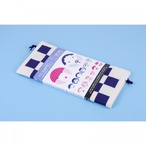 Mesdames & Messieurs est un jeu conçu en éco-design : le packaging très épuré en coton biologique GOTS, devient le plateau de jeu puis le sac de rangement ! Malin et surtout responsable. Le bois est issu de forêt gérées durablement dans le Jura Français, nos encres ont le label Imprim'Vert.