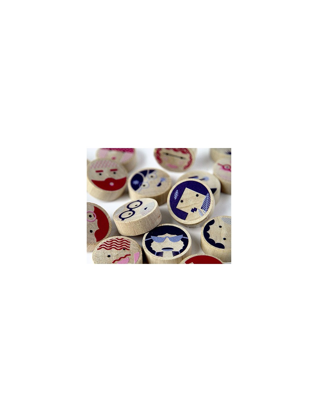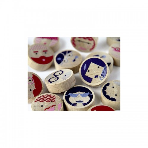 Les enfants disposent d'un planche d'autocollants afin de personnaliser chaque pion conçu en véritable bois de charme.