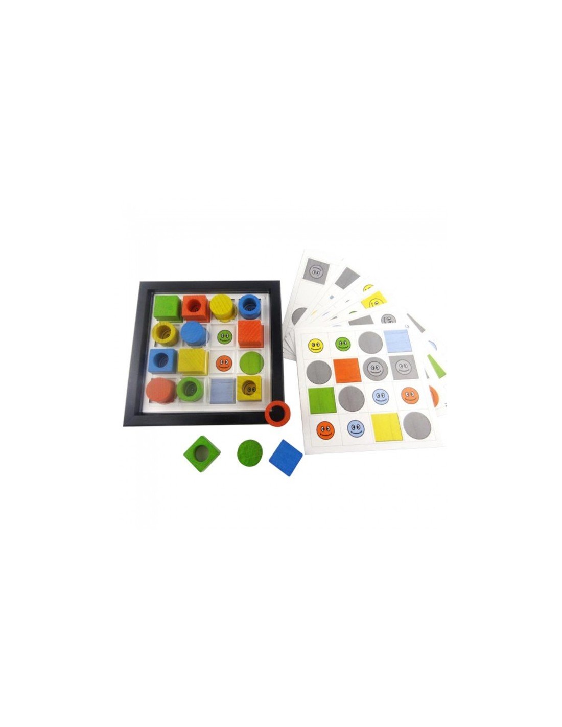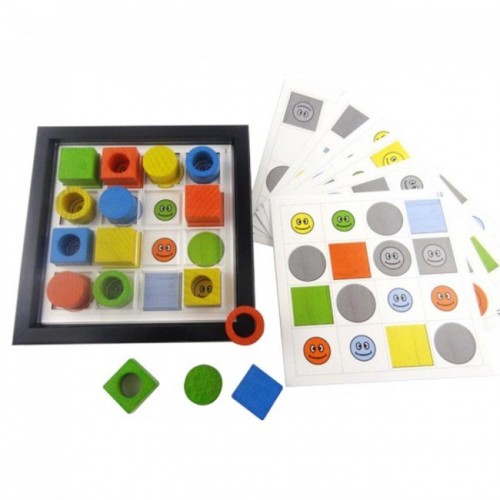 But du jeu du Sudoku pour 1 joueur : Positionner une grille et le calage plexi dans le cadre. Placer les 16 pions de telle sorte que sur les 4 lignes horizontales, verticales et les 2 grandes diagonales, il y ait un pion et un seul de chaque forme et de chaque couleur.