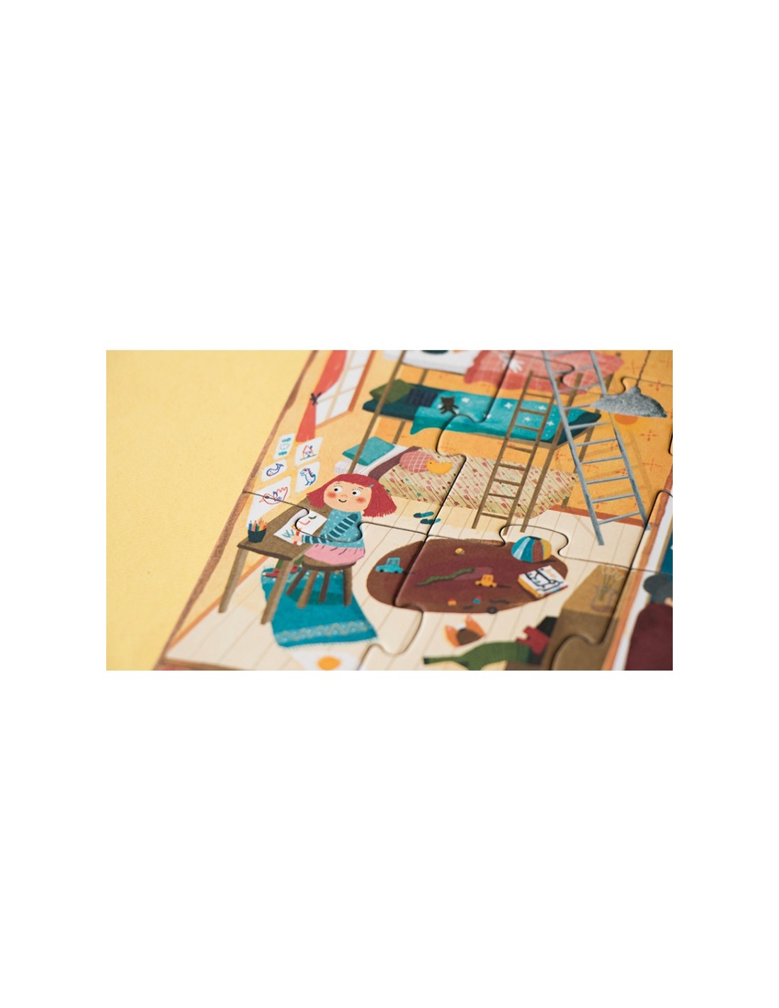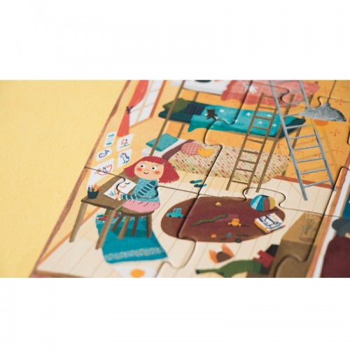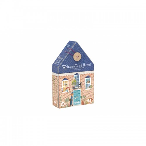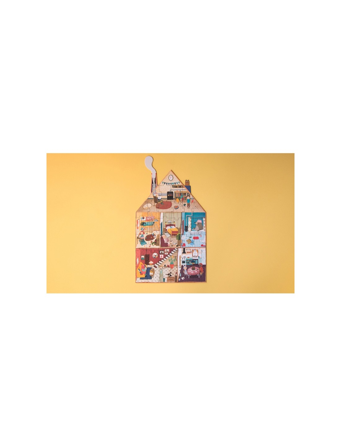 Un puzzle réversible de 36 pièces qui montre deux scènes de la même maison.