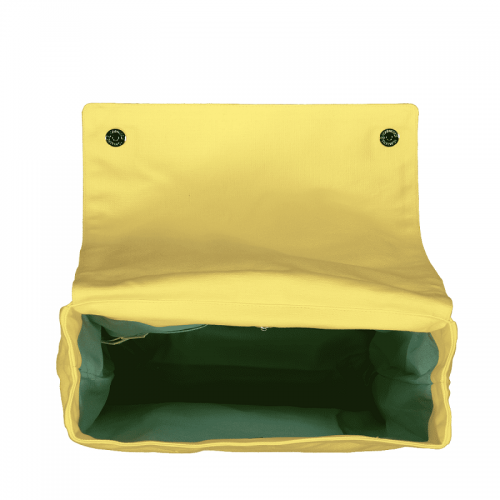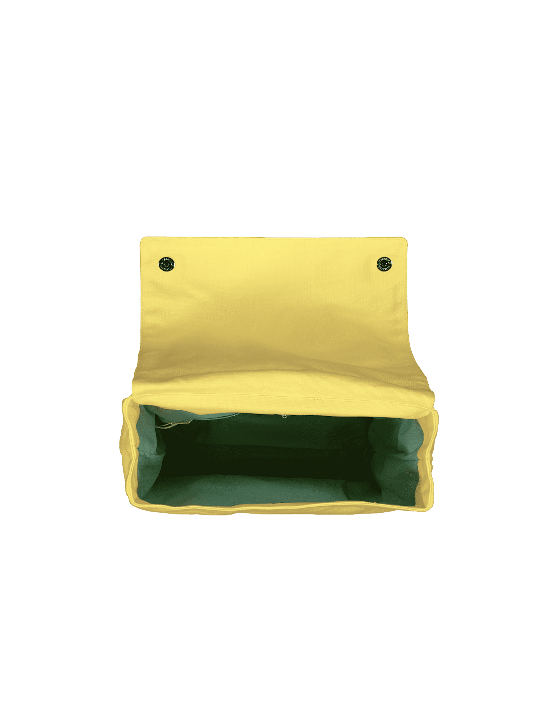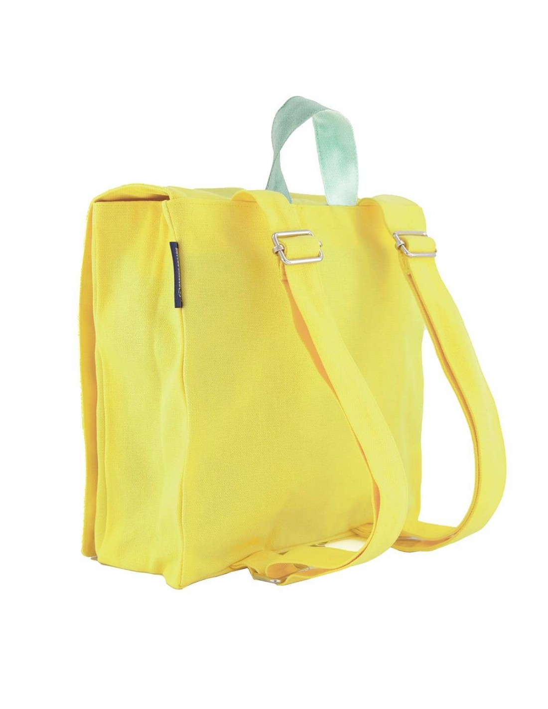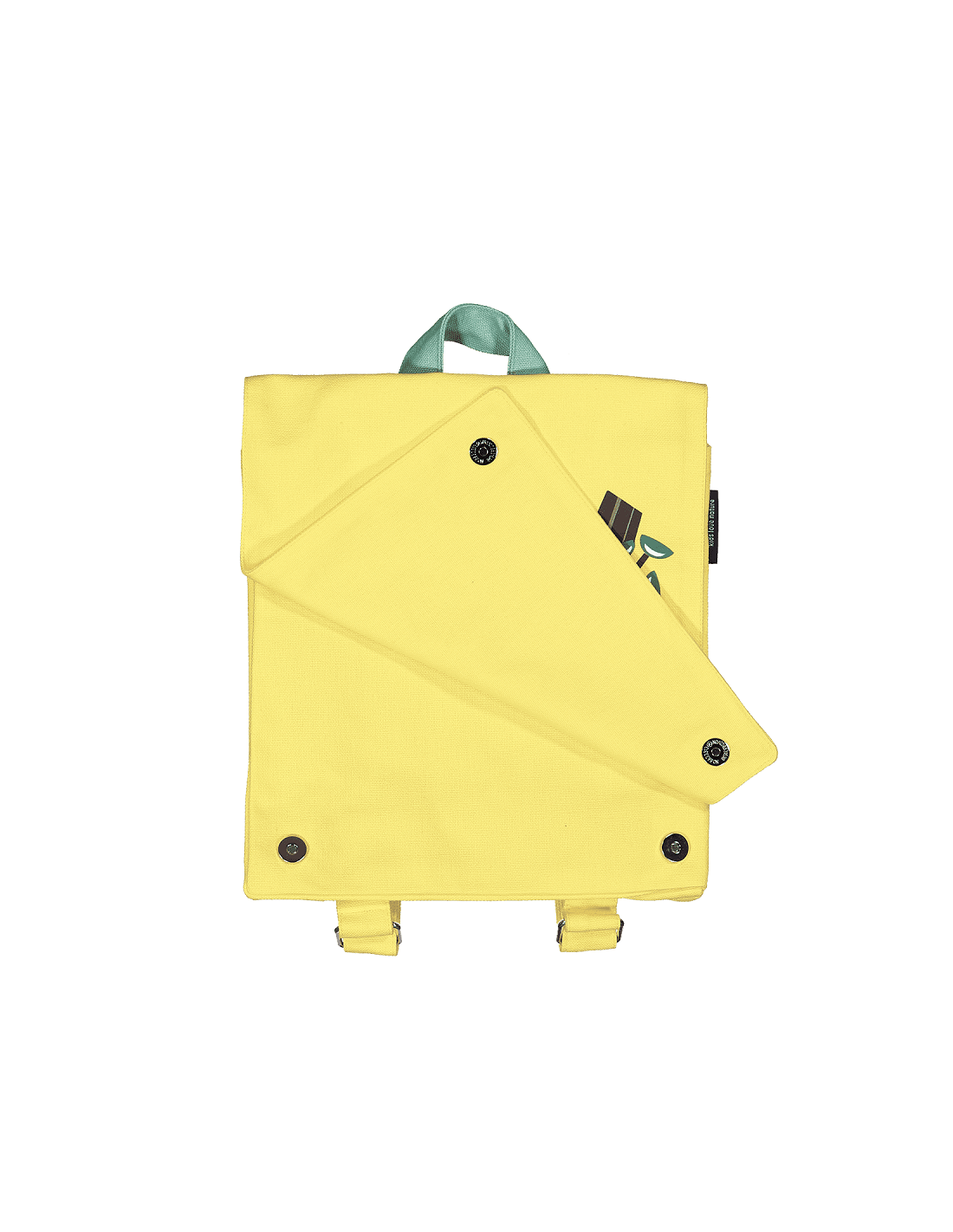 Le sac à dos Koala jaune Coq en pâte est 100% confectionné en coton biologique, en canvas épais.