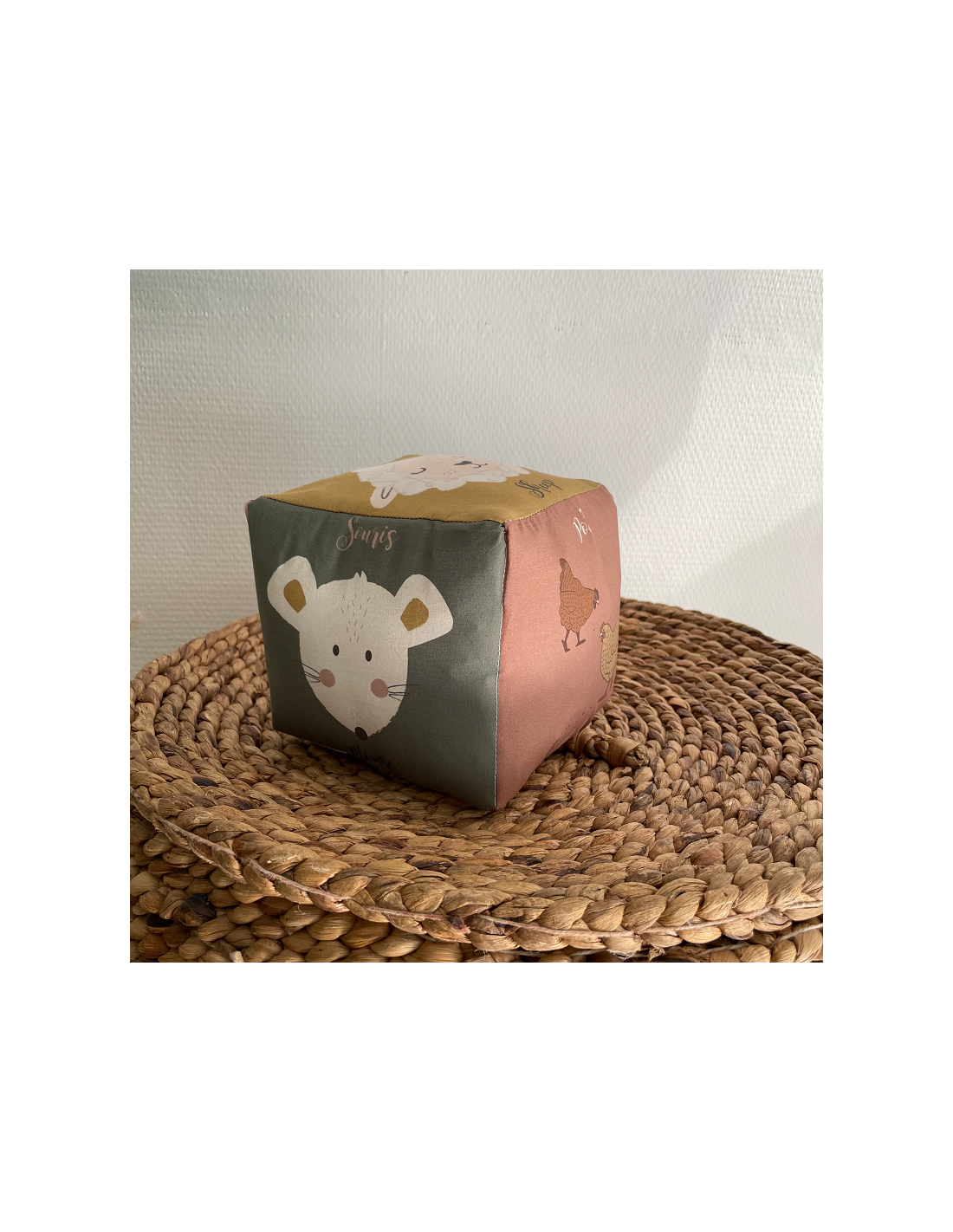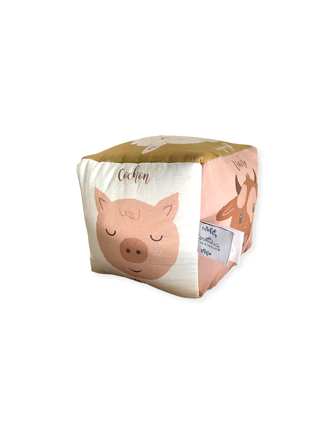 Ce cube d'éveil Animaux de la ferme Carotte & cie en tissu va attirer toute l'attention de bébé grâce à ses illustrations animales qui invitent au voyage.
