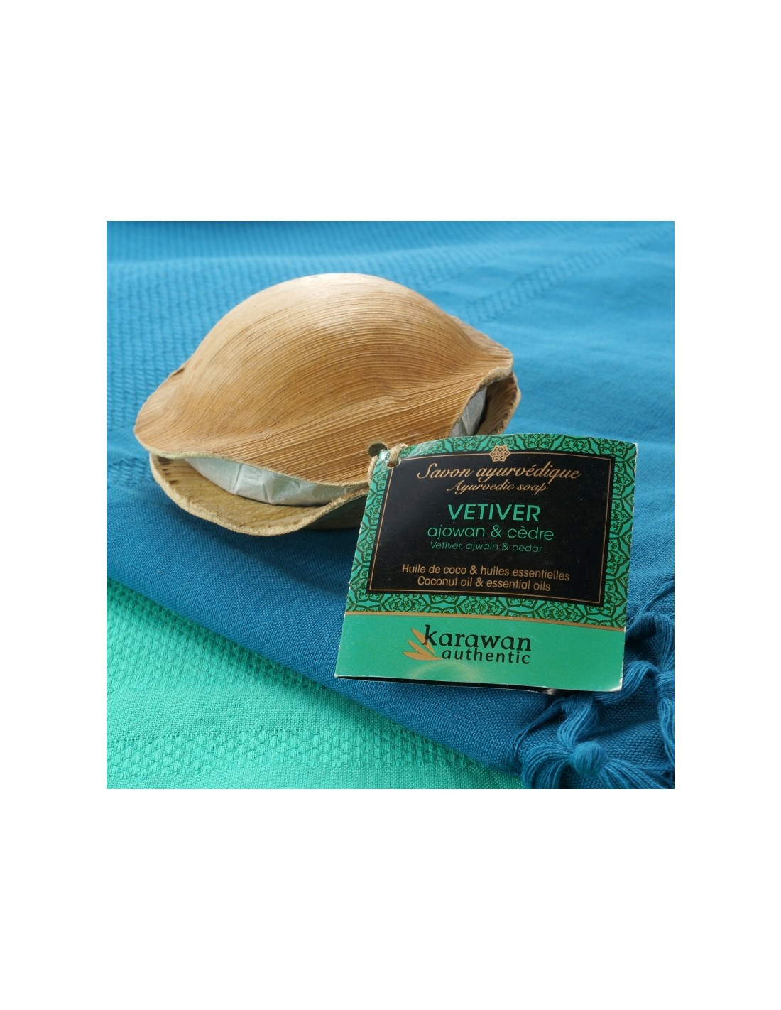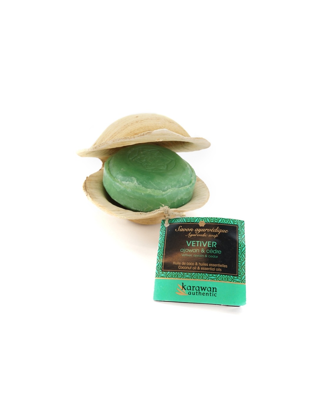 Savon tonifiant à base d'huile de noix coco et synergies de plantes ayurvédiques : Vétiver, ajowan, cèdre (100g).