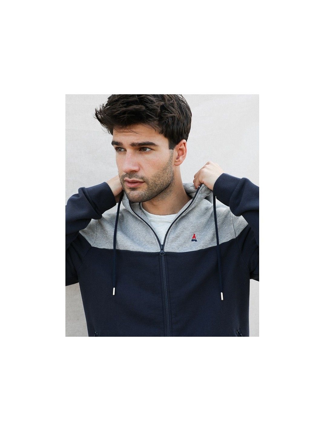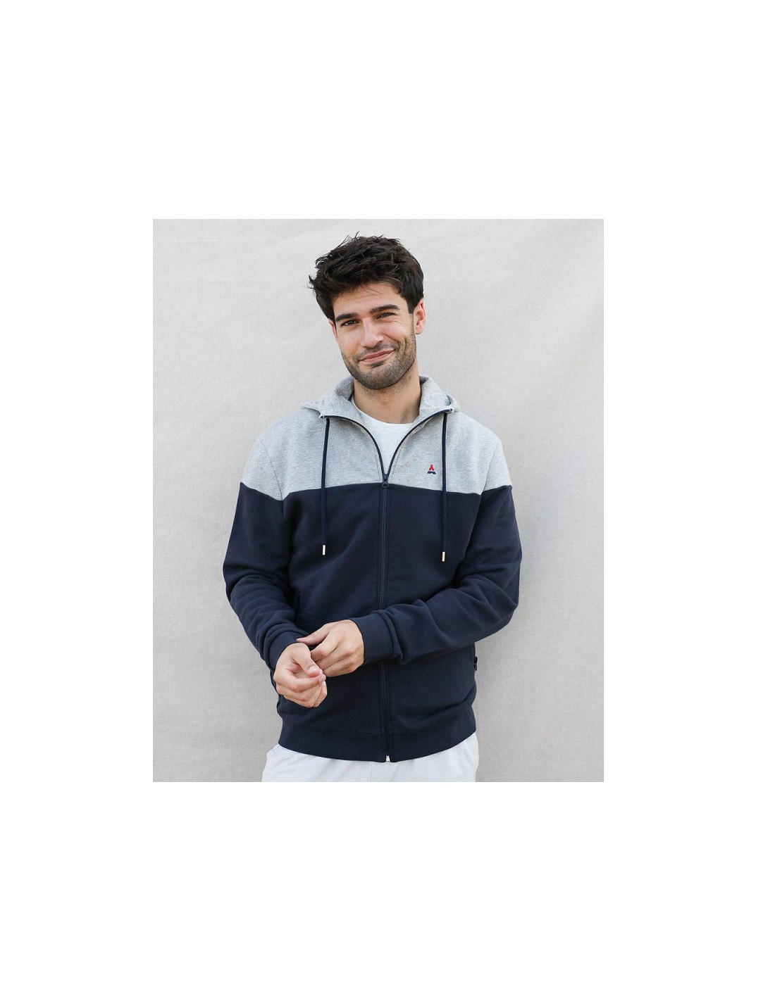 Le veste zippée capuche Zack marine gris coton bio Maison FT est une super veste à porter au quotidien facilement avec un jean ou un pantalon chino plus habillé. Vous apprécierez sa qualité, ses finitions, son confort... Gros coup de coeur pour ce produit !