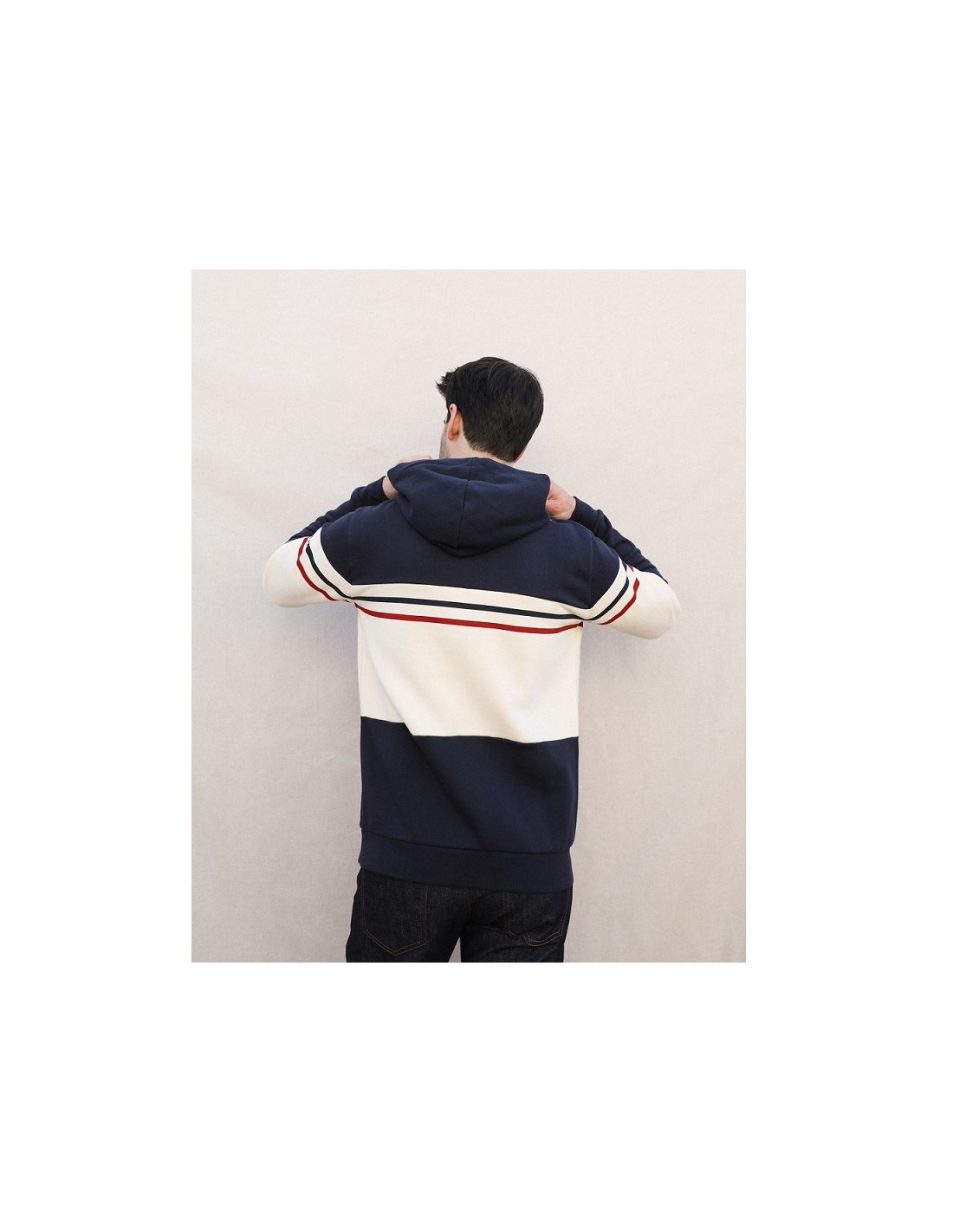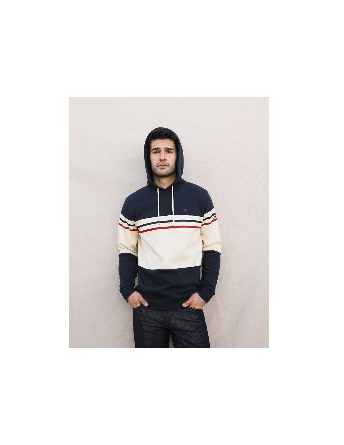 SWEAT CAPUCHE ULYSSE ST JAMES COTON BIO ECRU MARINE - MAISON FT