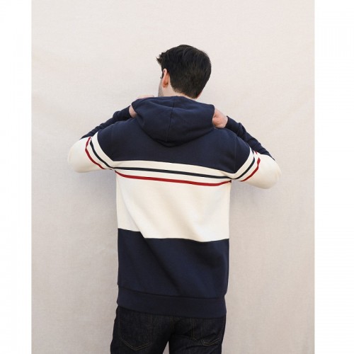 • Détails du produit : sweat coloris écume et marine, cordon écume et doré, broderie sur la poitrine gauche du logo maison FT, bord côte bleu marine, très belles finitions.