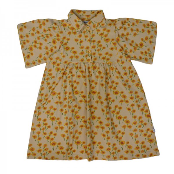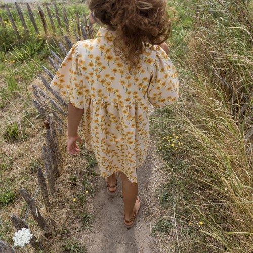 La robe en coton biologique imprimée tournesol Babakidswear fera craquer toutes les petites filles. En effet, ses belles couleurs, son imprimé ainsi que sa coupe très coquette la rende incontournable pour cet été.