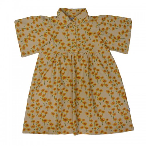 La robe en coton biologique imprimée tournesol Babakidswear, pour les petites filles de 2 à 8 ans, est à la fois coquette et confortable.
