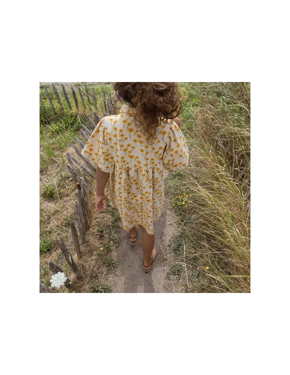 La robe en coton biologique imprimée tournesol Babakidswear fera craquer toutes les petites filles. En effet, ses belles couleurs, son imprimé ainsi que sa coupe très coquette la rende incontournable pour cet été.