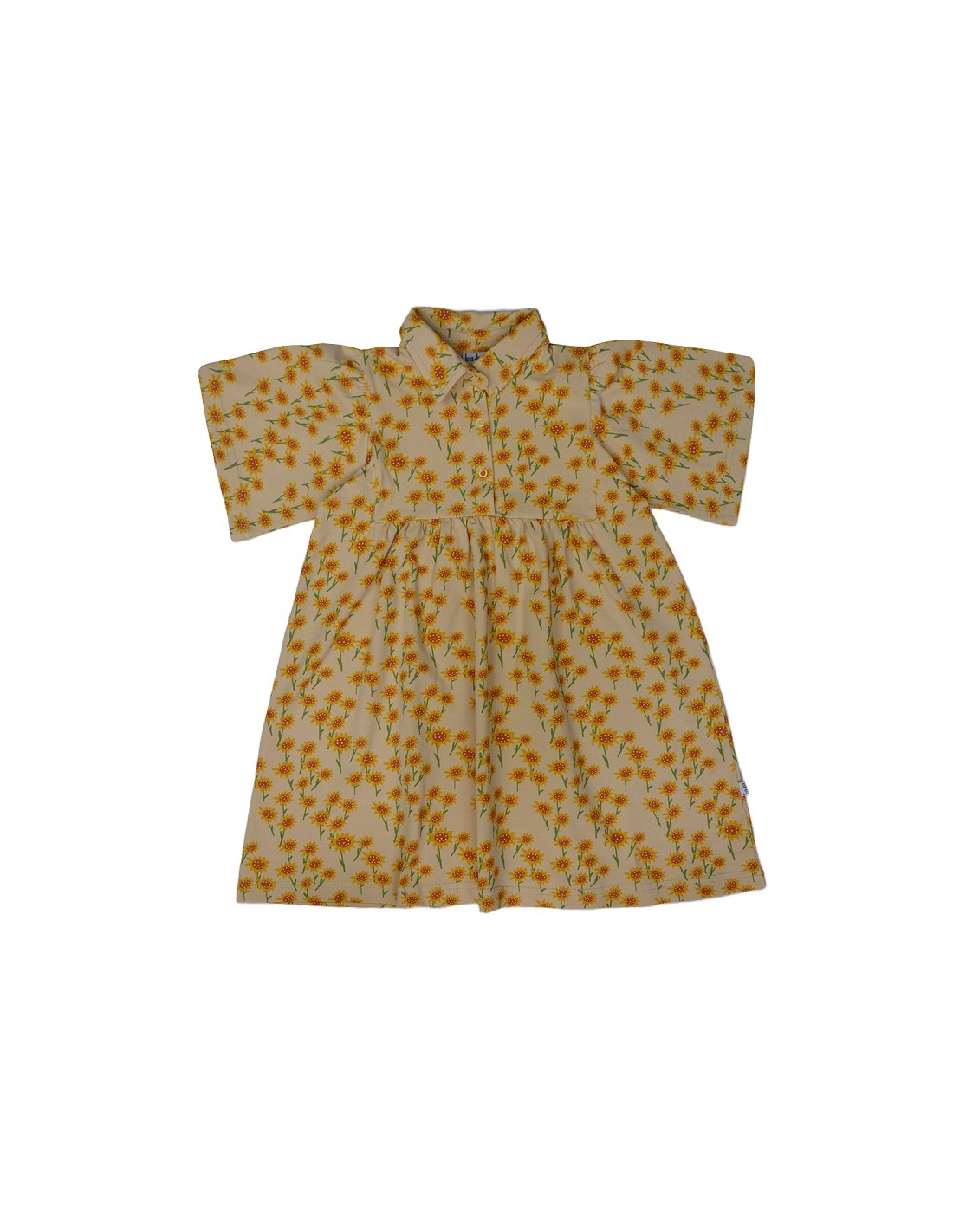 La robe en coton biologique imprimée tournesol Babakidswear, pour les petites filles de 2 à 8 ans, est à la fois coquette et confortable.
