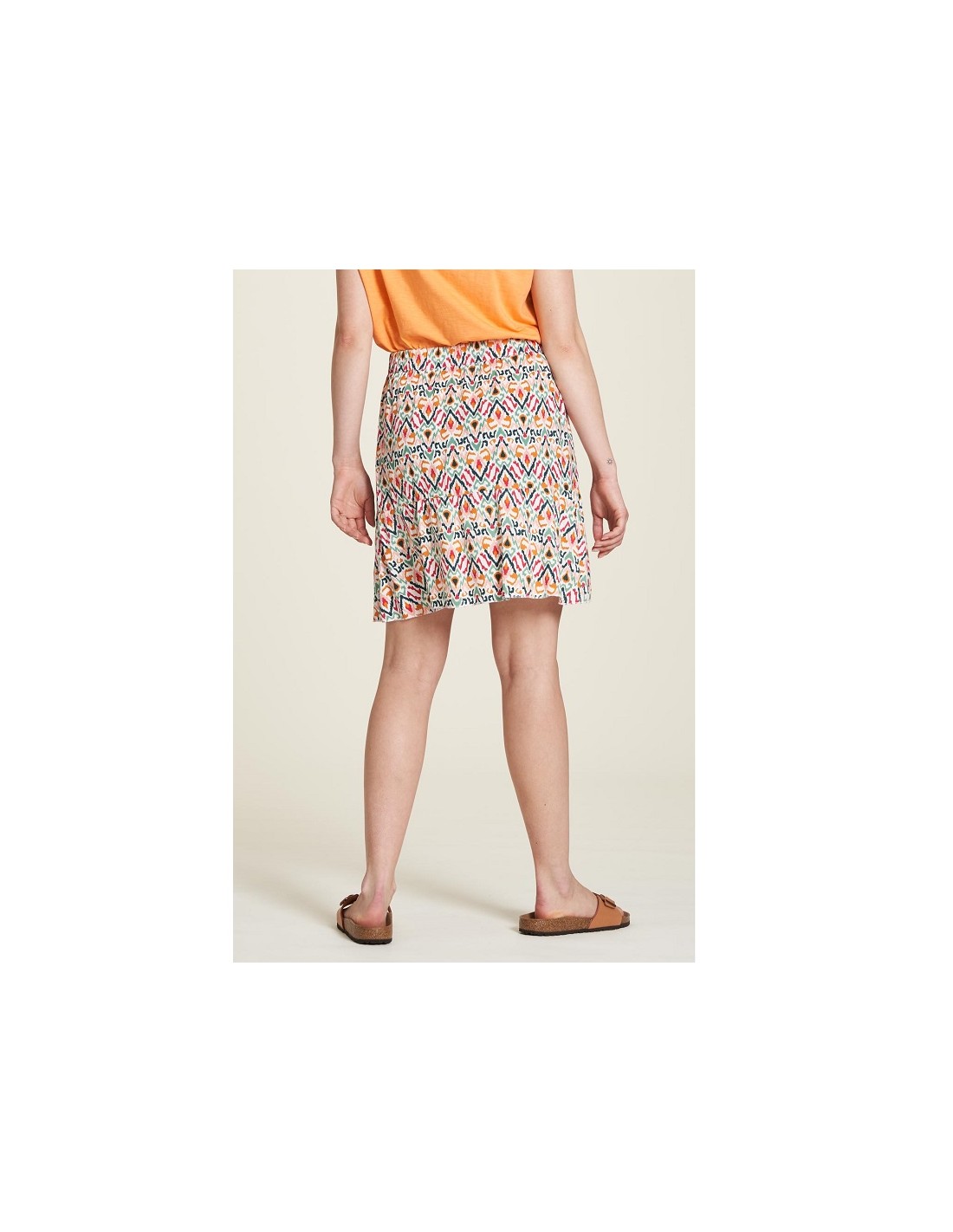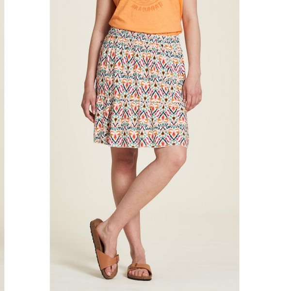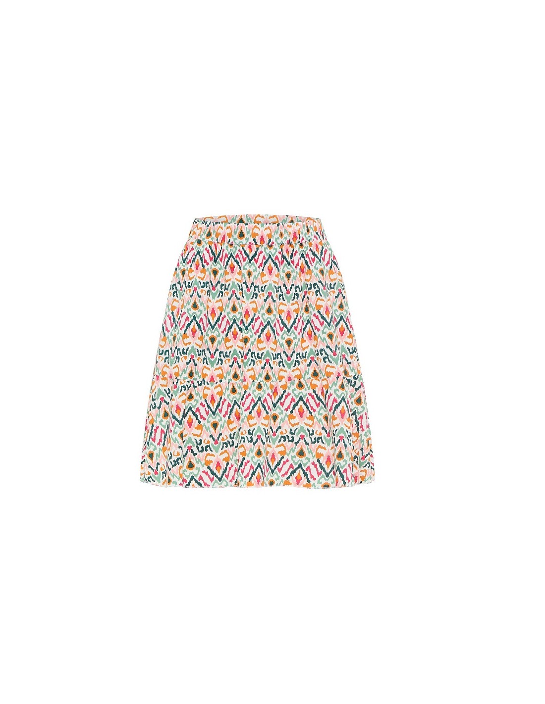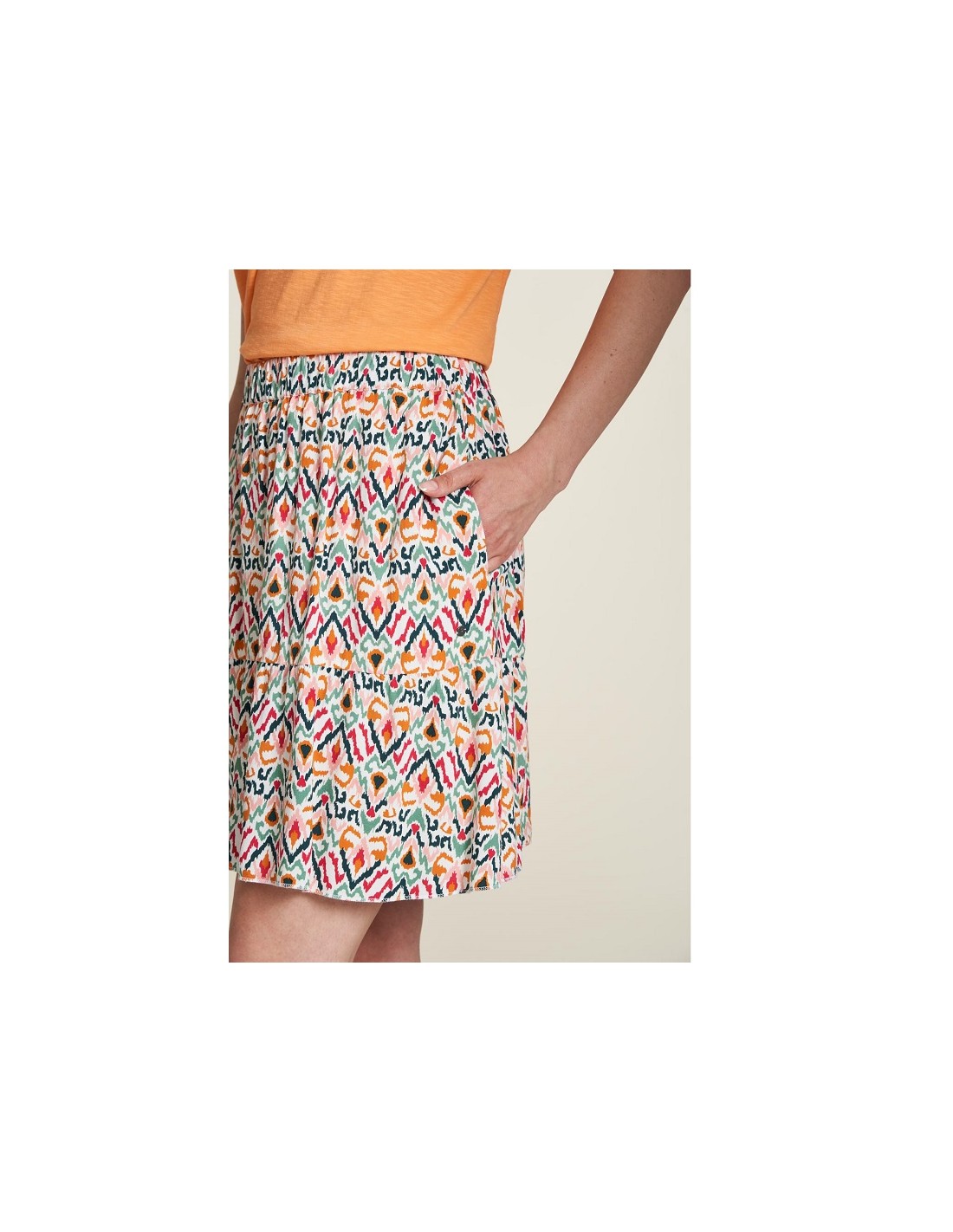 La jupe courte ecovero légère imprimé IKAT Tranquillo est une jupe très chouette à porter l'été car elle est légère et son imprimé coloré amène du peps !