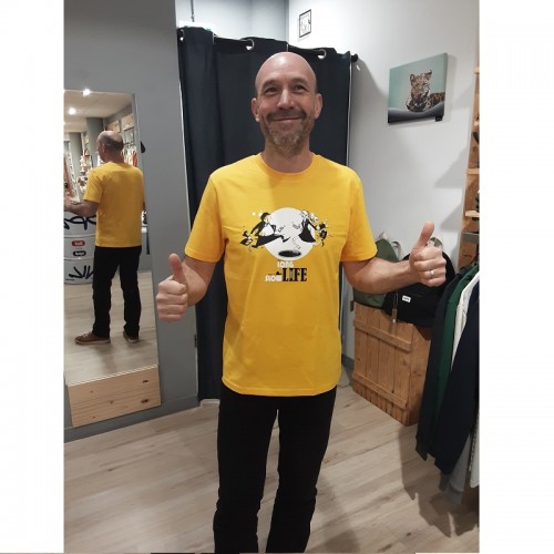 Ce T-shirt manches courtes douala Slow life jaune Quat'rues en coton bio vous permettra d'afficher et d'affirmer vos valeurs et vos différences !