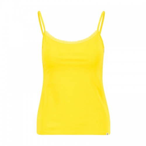 • Détails du produit : haut débardeur fines bretelles, top près du corps, tissu non transparent, fantaisie dentelles sur le col devant, coloris jaune.