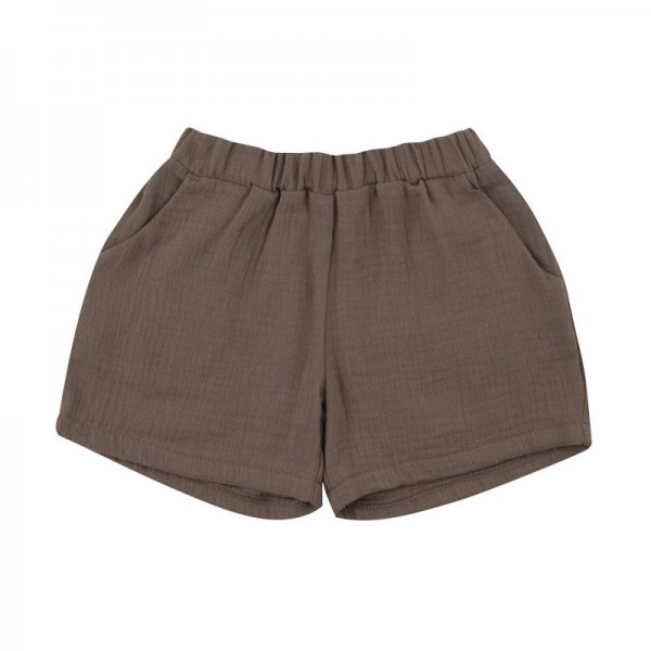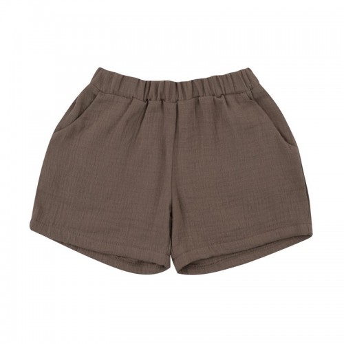 Ce short marron taupe Wooly organic est fabriqué en mousseline de coton de qualité supérieure certifiée GOTS.