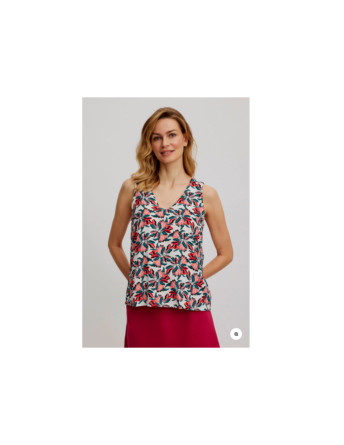 Le débardeur léger écoviscose imprimé cocoaTranquillo est un débardeur très agréable à porter, de part sa matière. L'imprimé fleuri est sur fond blanc.