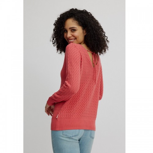 Ce pull tricot ajoure en coton bio corail Tranquillo se portera facilement avec un jean les soirées d'été !