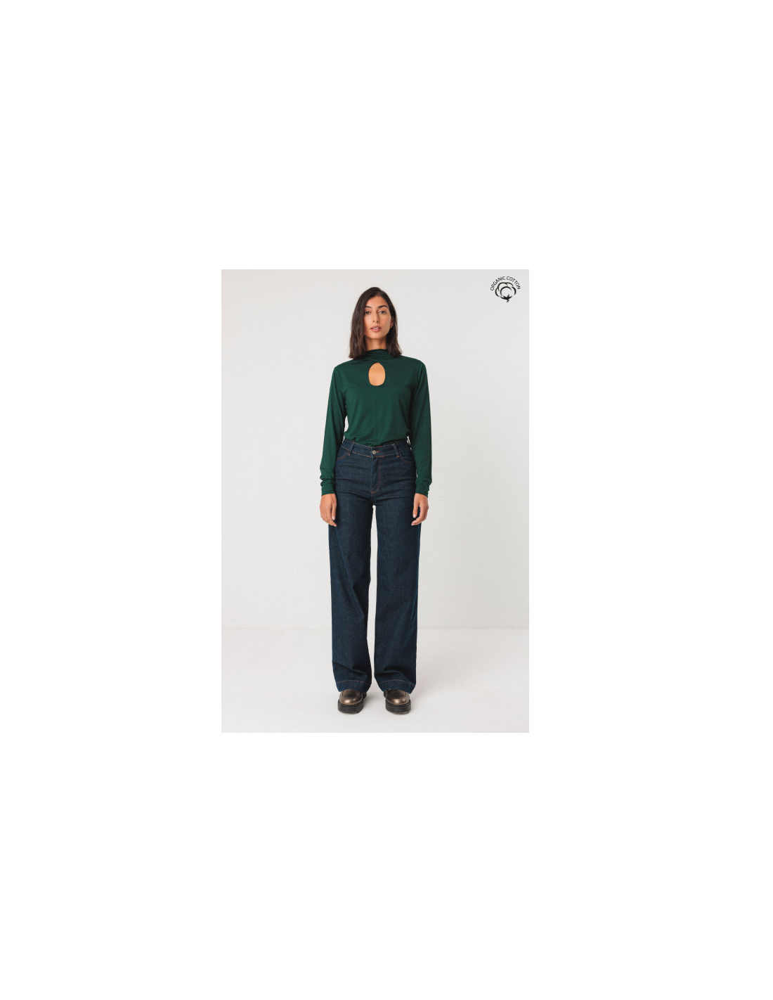 - Matière : coton biologique extensible composé à 91% de coton biologique et coton recyclé et à 9% d'élasthanne.