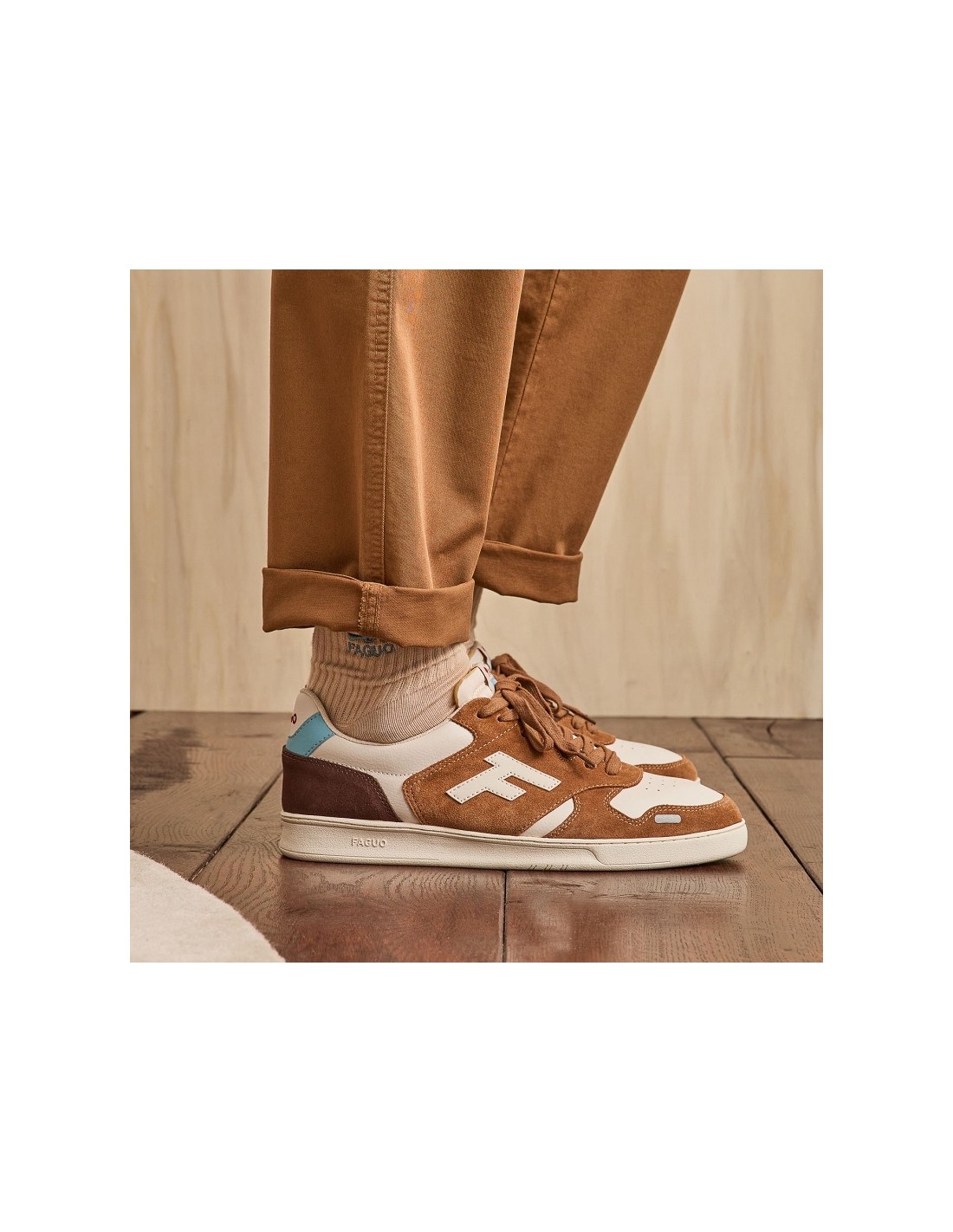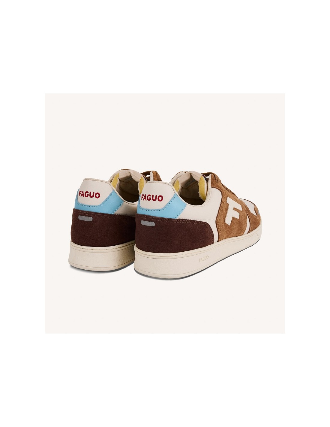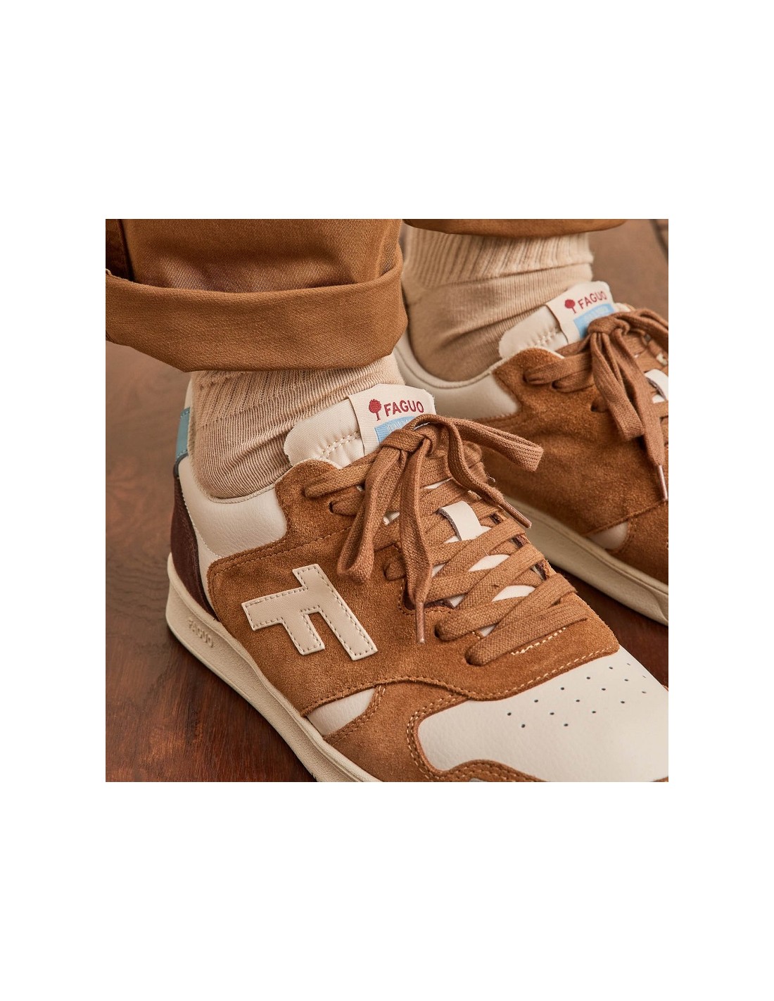 Les chaussures palmer écrues et marron - FAGUO sont des sneakers qui combinent subtilement élégance et engagement écologique.