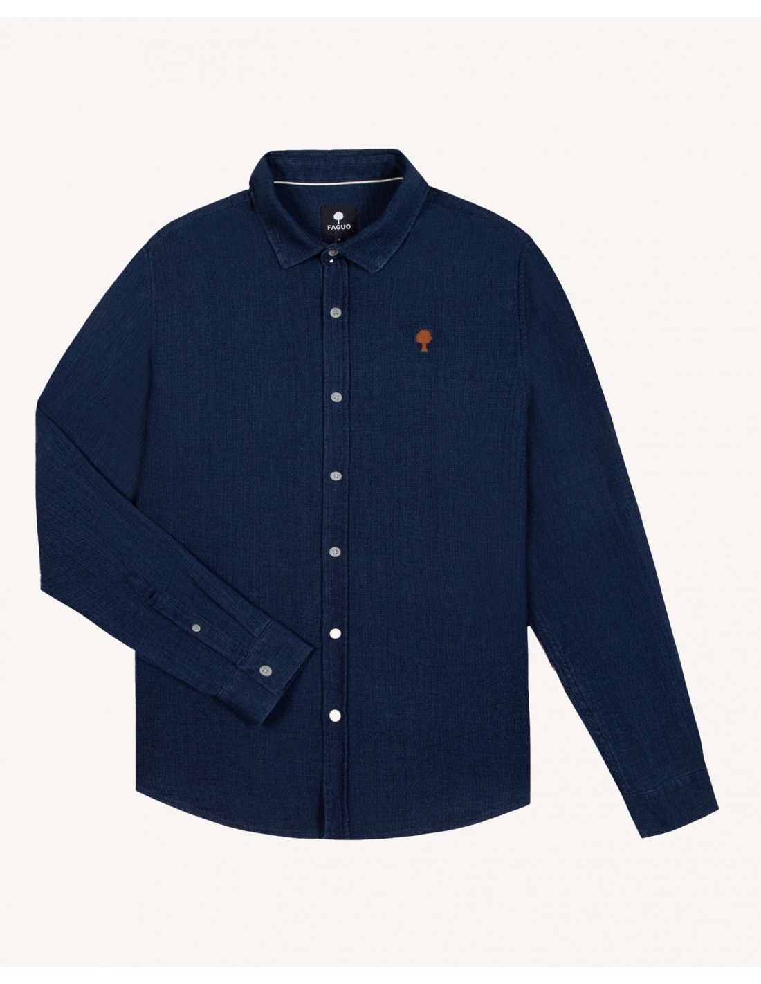 La chemise IRATY bleu denim - Faguo est un essentiel revisité avec une coupe droite ajustée.