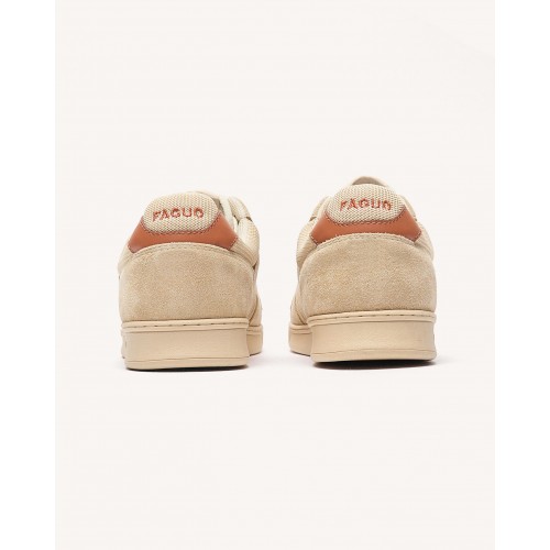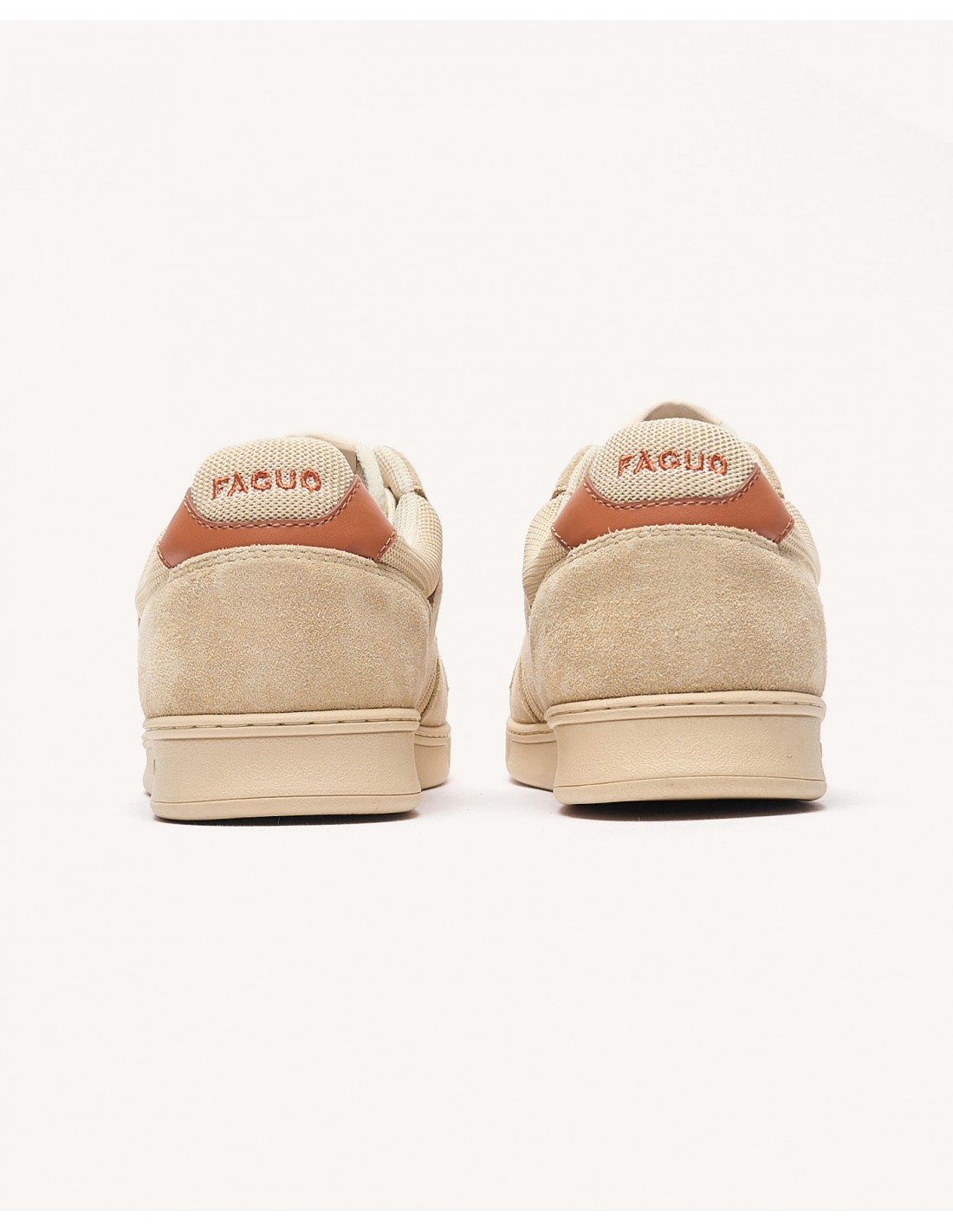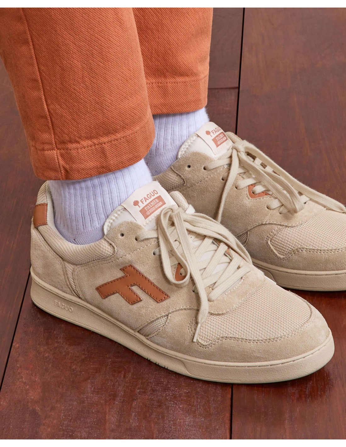 Les baskets beiges homme PALMER Faguo proposent un style affirmé et engagé. Derrière leurs lignes inspirées des années 80, elles misent sur des matières choisies pour leur faible empreinte carbone : polyester recyclé, doublure issue de fibres régénérées, lacets en coton bio.