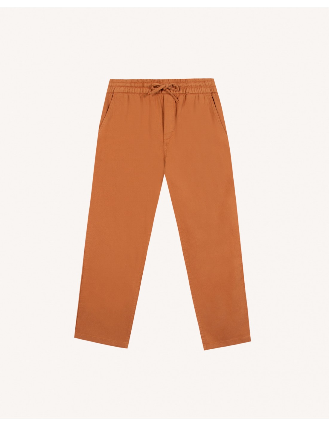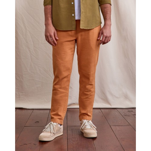 Le Pantalon Dreuille brique clair - Faguo en lin et coton mise sur un style facile, pensé pour enchaîner les journées avec confort et tenue. Sa taille élastiquée avec cordon de serrage apporte une vraie liberté de mouvement, tout en conservant une silhouette propre. Son sergé épais et fluide donne un tombé agréable et une sensation de robustesse, sans rigidité.