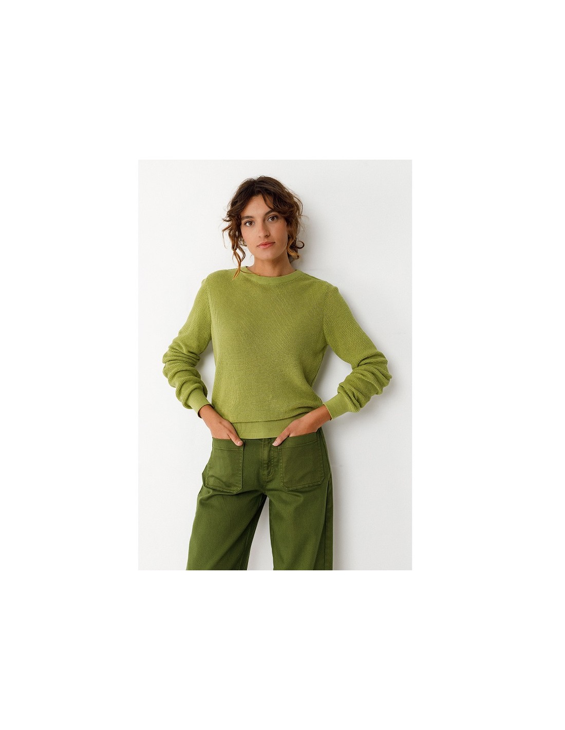 Le pull iradi maille coton bio vert SKFK est un pull léger pour l'été, agréable à porter, avec une coupe classique et de belles finitions.