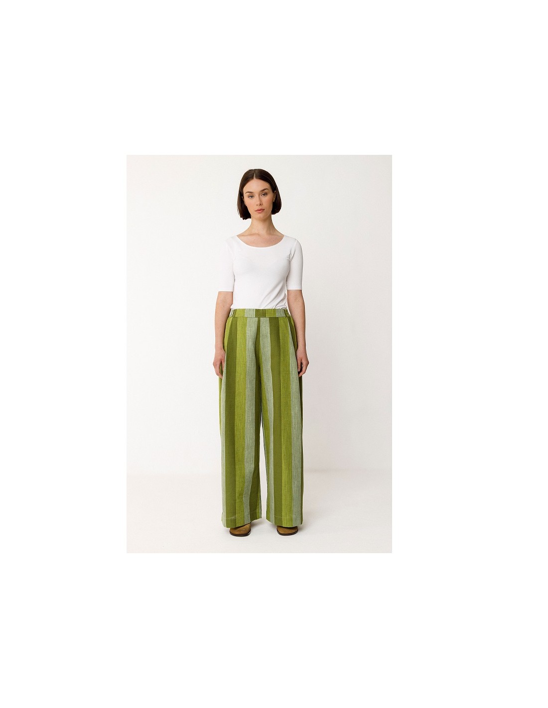 Le pantalon lin coton bio LUR à rayures vertes SKFK est un pantalon très élégant qui se portera facilement avec un haut blanc ! Effet waouh garanti ! Vous pourrez aussi le porter avec le débardeur lesia pour un look total de la même marque SKFK.