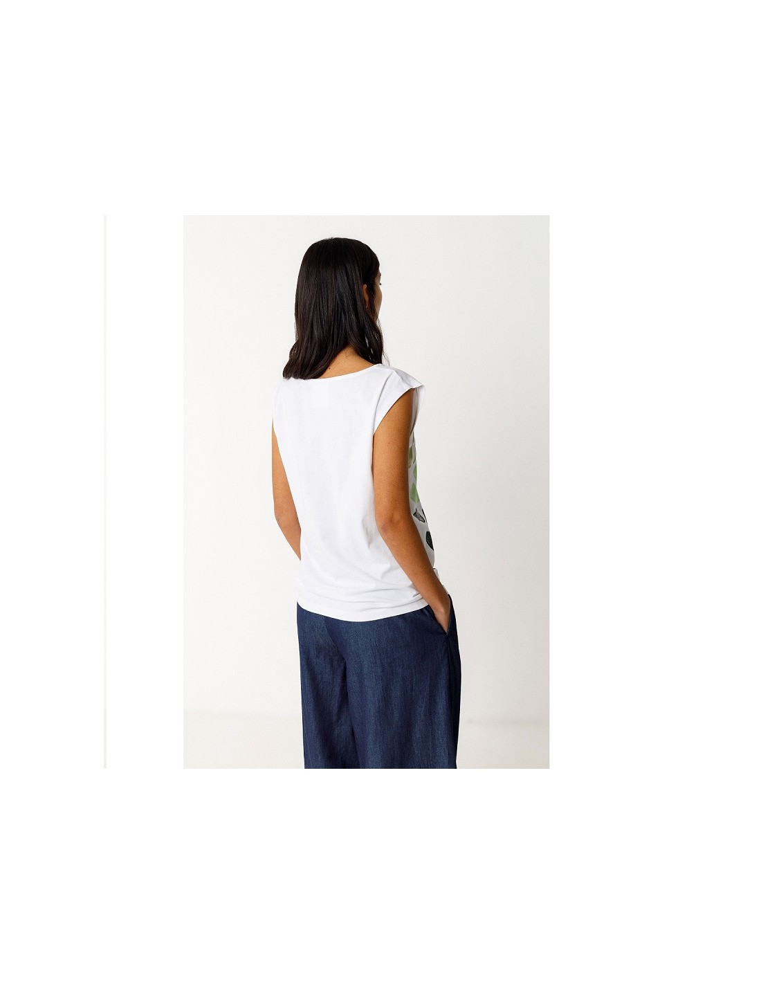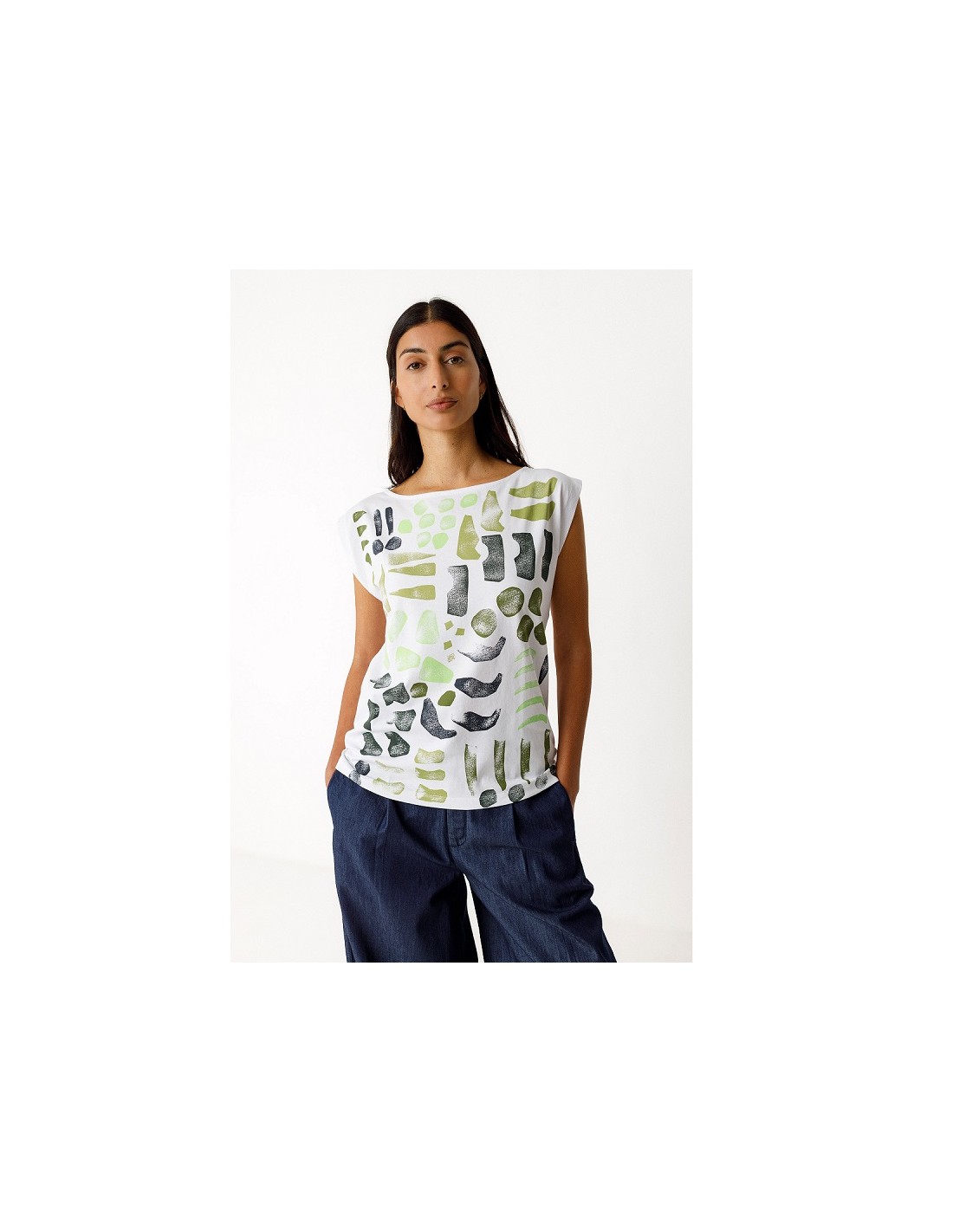 Ce t shirt sans manches Marixol en coton bio imprimé SKFK est un classique de la marque car sa coupe est simple et efficace ! Pour cette collection, il est décliné uni blanc avec des éléments sr le devant dans un dégradé de vert et gris !